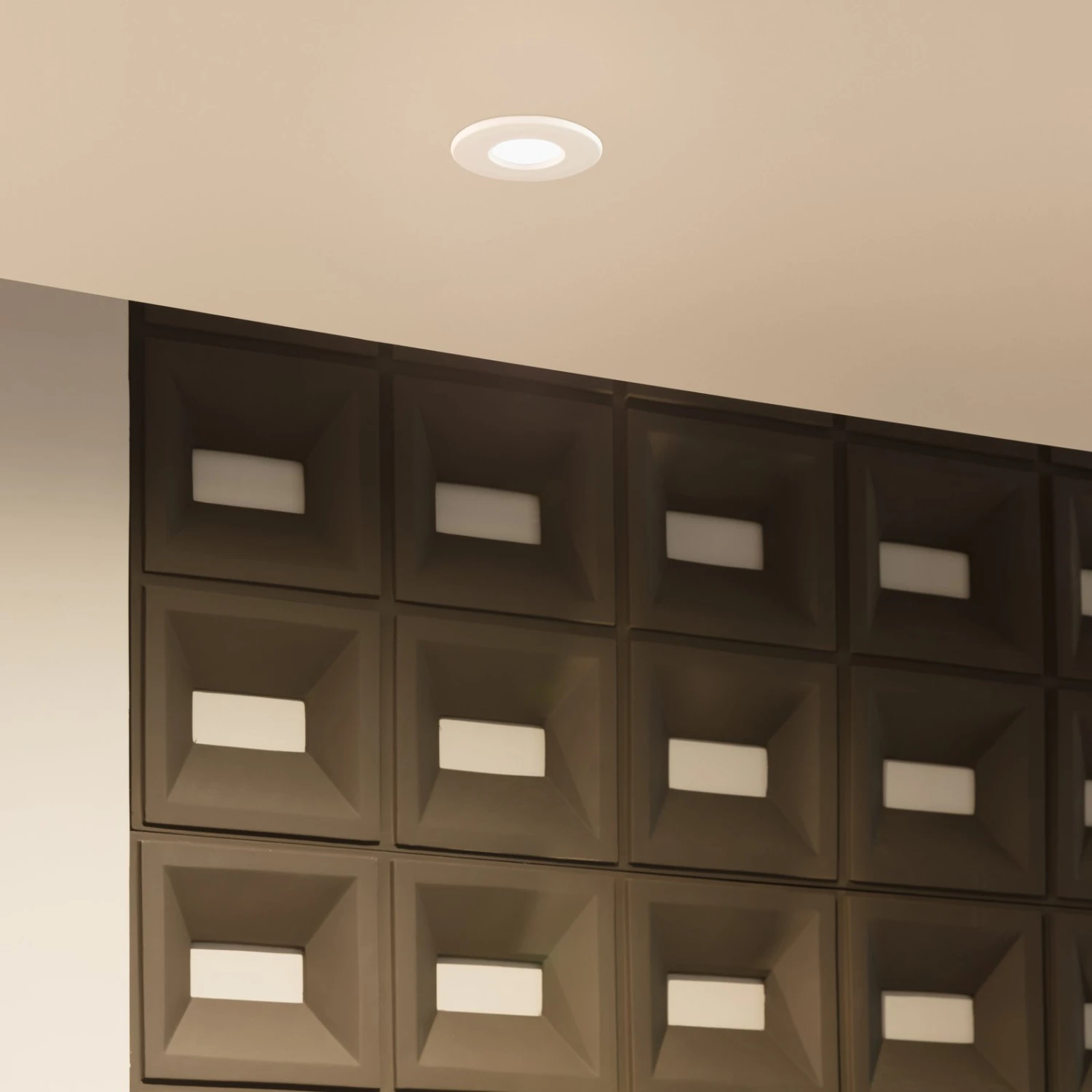 Elmon est un luminaire LED encastré très pratique et polyvalent qui peut être utilisé non seulement dans les pièces normales, mais aussi dans les salles de bains et les pièces humides, tout en restant discret avec sa finition blanche et sa forme ronde. Le degré de protection est particulièrement élevé avec IP65 à l’état monté, de sorte qu’Elmon est particulièrement bien protégé en tant que downlight. Avant le montage, la couleur de la lumière peut être réglée à volonté à l’aide du commutateur DIP. Il est possible de choisir entre quatre couleurs de lumière différentes et de s’adapter ainsi particulièrement bien à chaque environnement. La lumière des LED est en outre claire et efficace, ce qui permet d’obtenir une luminosité adéquate avec une faible consommation d’énergie. Si l’on utilise plusieurs luminaires de la série ensemble, on peut alors garantir un éclairage sur une grande surface.