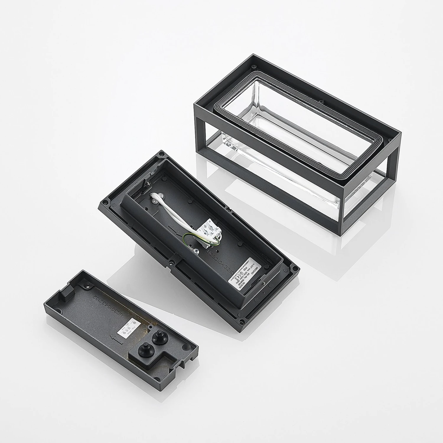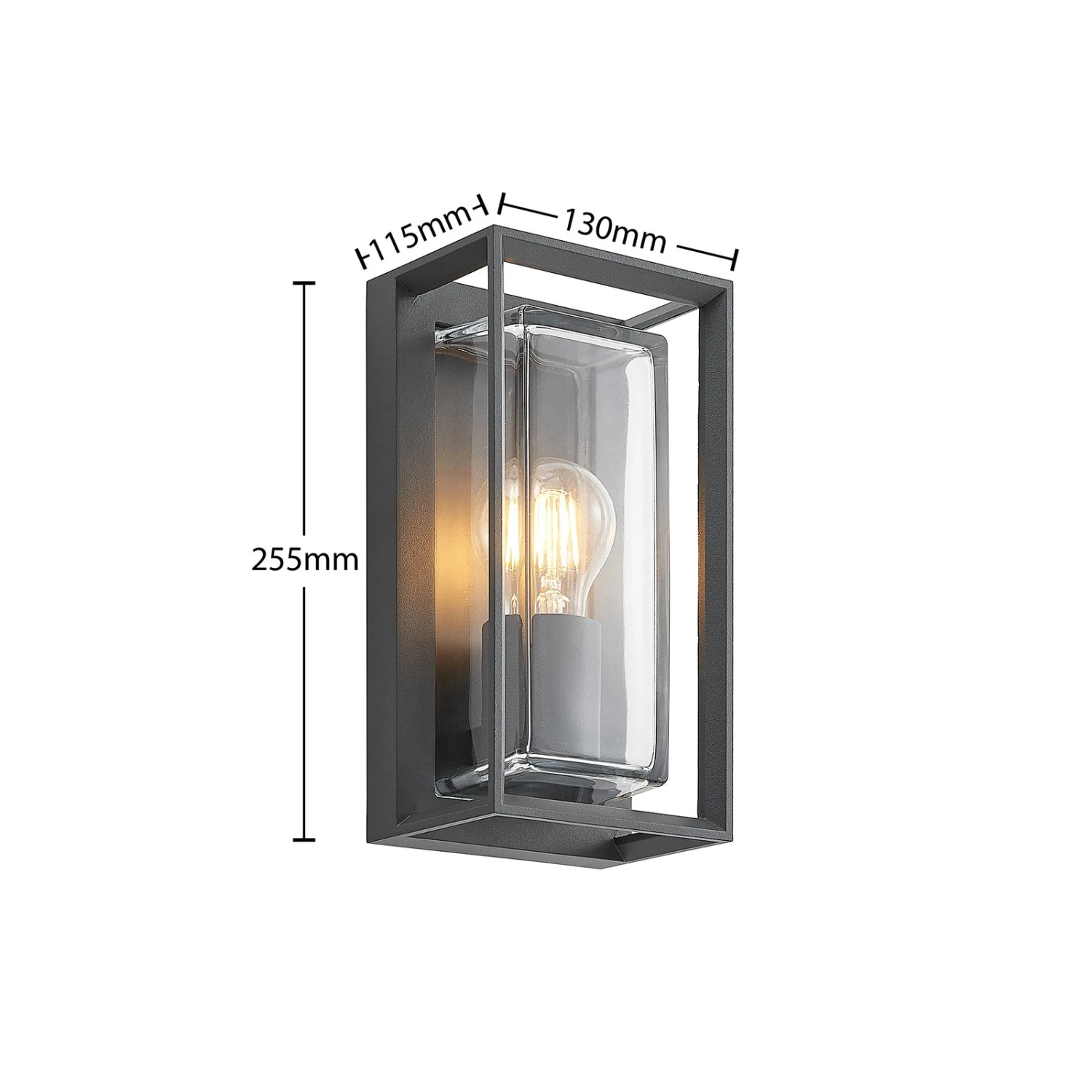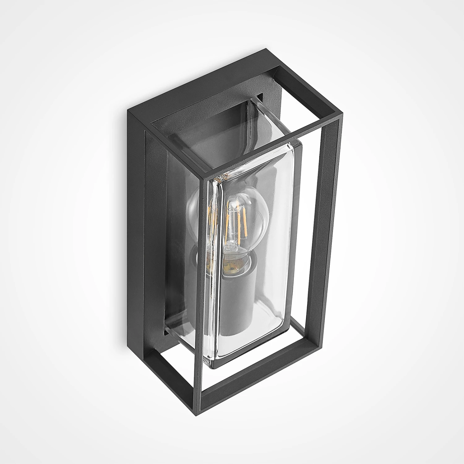 L’applique murale d’extérieur Ismera a un aspect moderne et élégant grâce à sa conception linéaire et aux matériaux utilisés : aluminium moulé sous pression en gris foncé et verre clair. La lumière de l’ampoule peut rayonner dans toutes les directions, de sorte que l’entrée ou la terrasse, par exemple, est parfaitement éclairée, tant vers le haut que vers le bas et aussi sur les côtés. L’aspect décoratif du luminaire mural extérieur peut être encore amélioré par l’utilisation d’une lampe à filament transparent. Doté de la classe de protection IP65, il peut également être facilement installé dans des zones non couvertes.