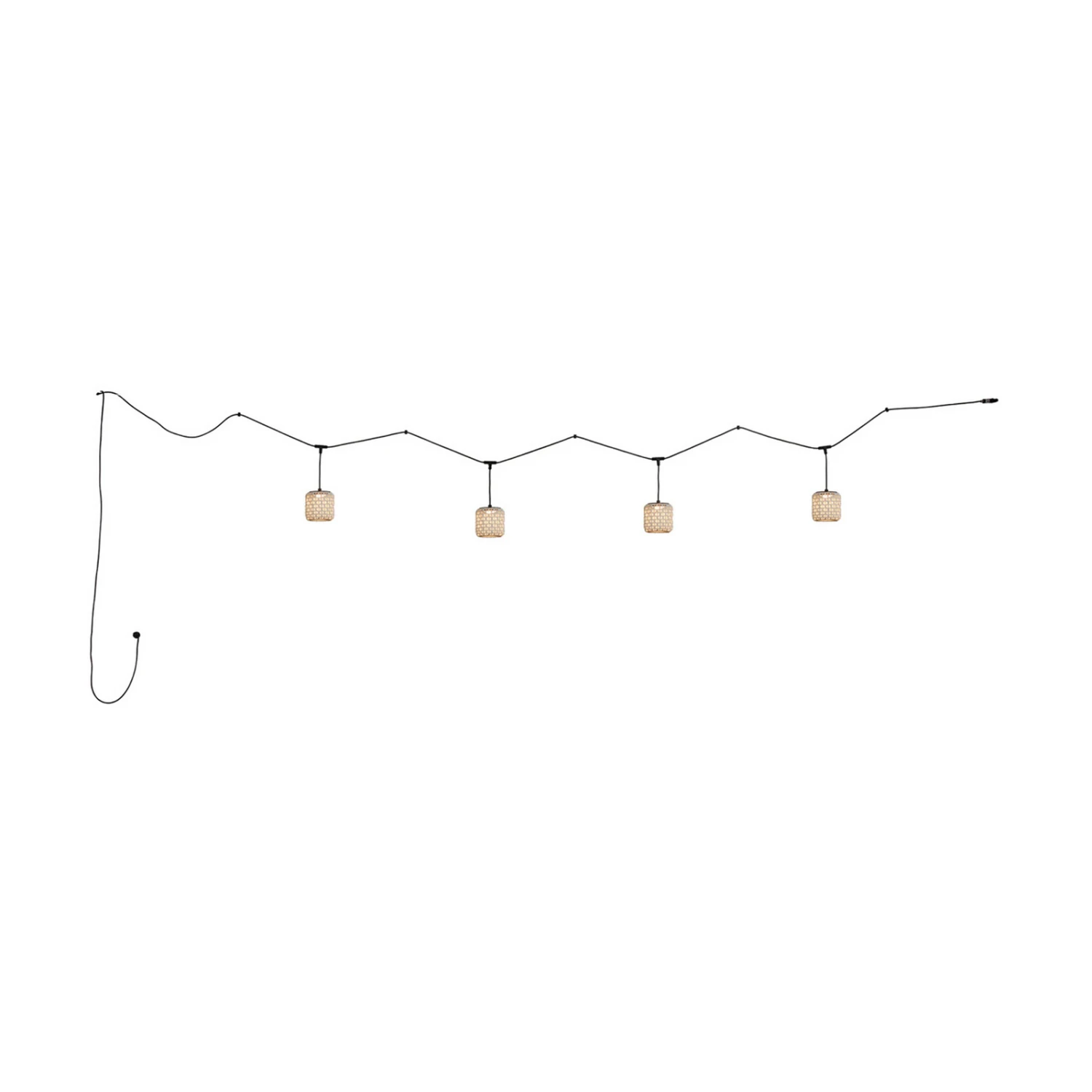 Quatre suspensions sur un câble d’alimentation : « Guirlande lumineuse » Nans pour l’extérieurLe modèle Nans S/16/4L est une suspension très particulière, car il s’agit en fait d’un mélange entre une guirlande lumineuse et une suspension, Nans n’ayant pas une seule suspension, mais quatre. Cette guirlande lumineuse suspendue permet d’éclairer l’extérieur de manière particulièrement raffinée et stylée, que ce soit sur la terrasse, le balcon, à l’abri ou non. Il est seulement important de disposer d’une prise de courant à proximité pour alimenter les luminaires en électricité. Nans est un modèle de la maison Bover de Barcelone. La fondatrice Joana Bover a elle-même conçu cette série de luminaires pour l’extérieur et apporte ainsi l’ambiance de sa ville natale, Barcelone, et de la Méditerranée dans la maison de nombreuses autres personnes.