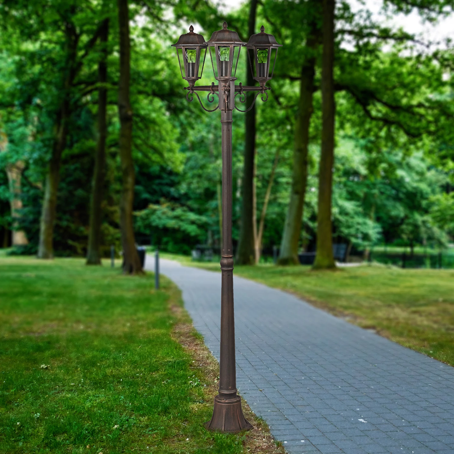 Ce candélabre se présente sous une forme classique qui rappelle les lanternes d’autrefois. Le support métallique des abat-jour est doté d’un petit toit et tout autour sont disposées six vitres transparentes. L’ensemble est joliment décoré de petits détails. Le candélabre Lamina s’adapte à de nombreux environnements au charme classique et peut être équipé avec des ampoules pourvues d’un culot E27. Cela comprend non seulement des lampes à incandescence ou halogènes, mais aussi des lampes à économie d’énergie et des ampoules LED.