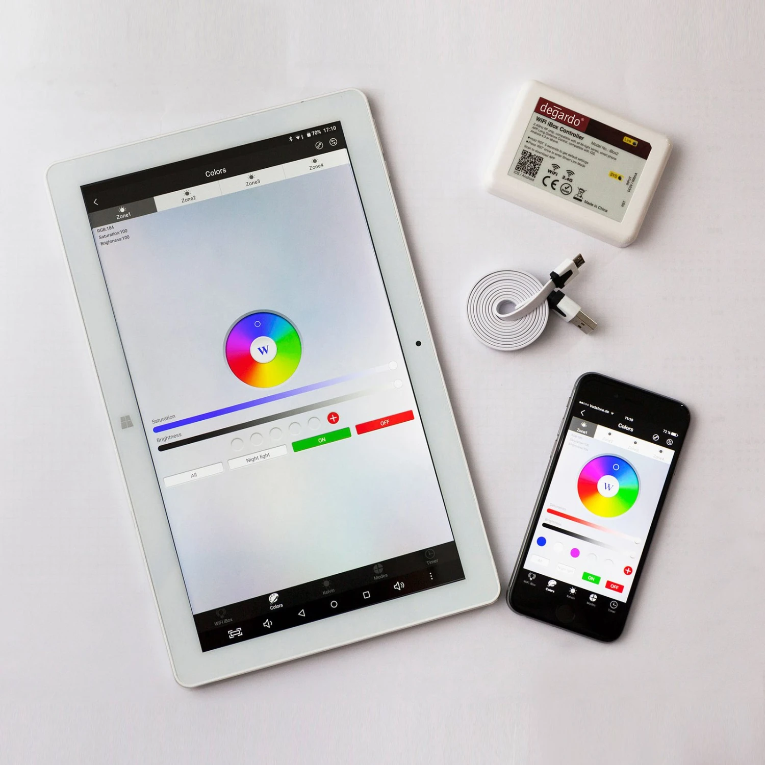 Avec ce contrôleur WiFi, les lumières décoratives Degardo® telles que Storus, Trevia et Rovio peuvent être contrôlées et mises en réseau de manière pratique via un smartphone ou une tablette.