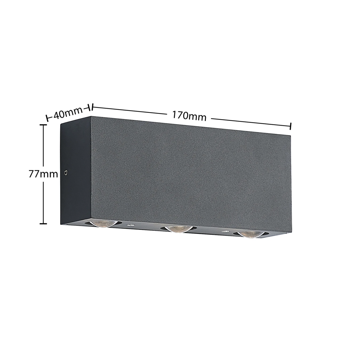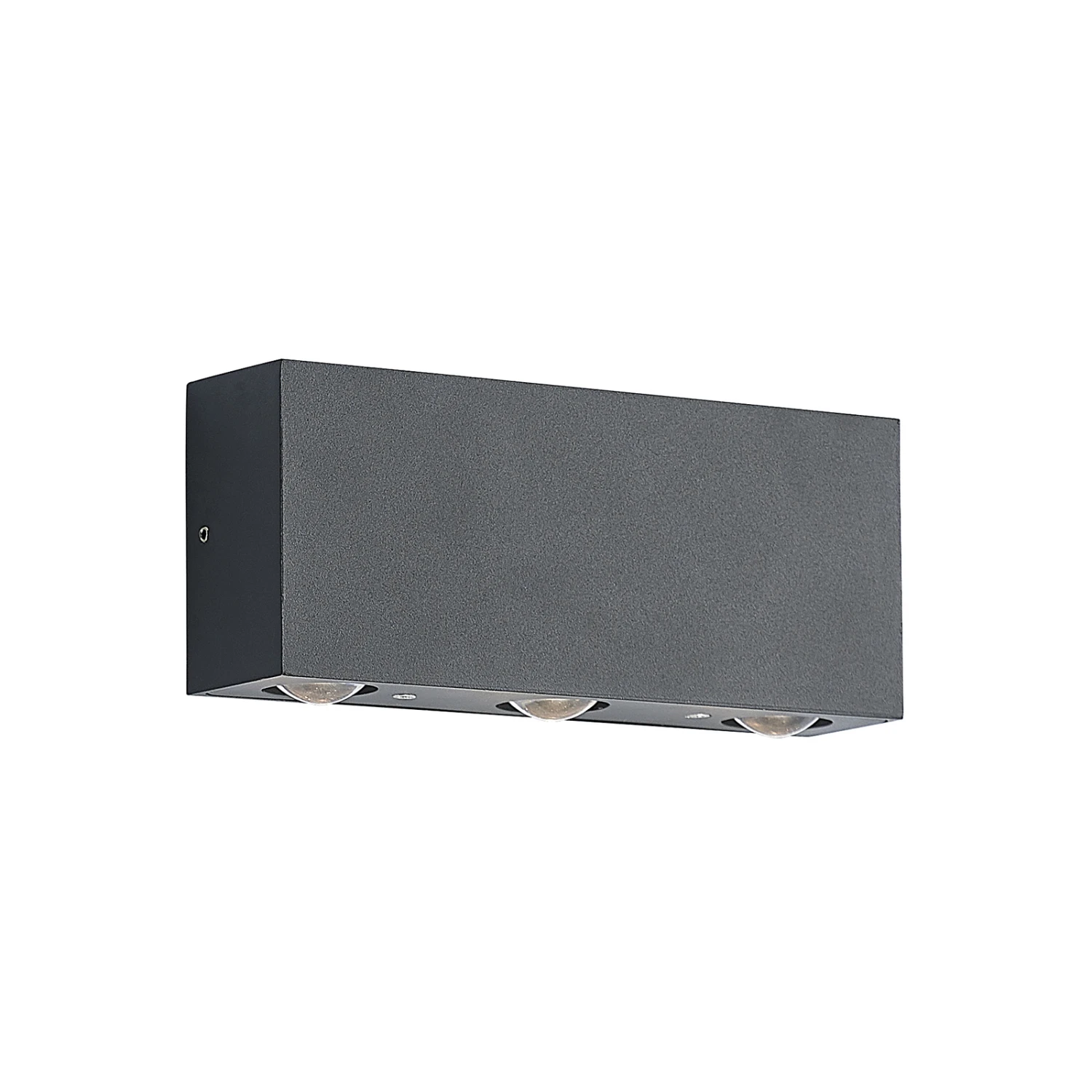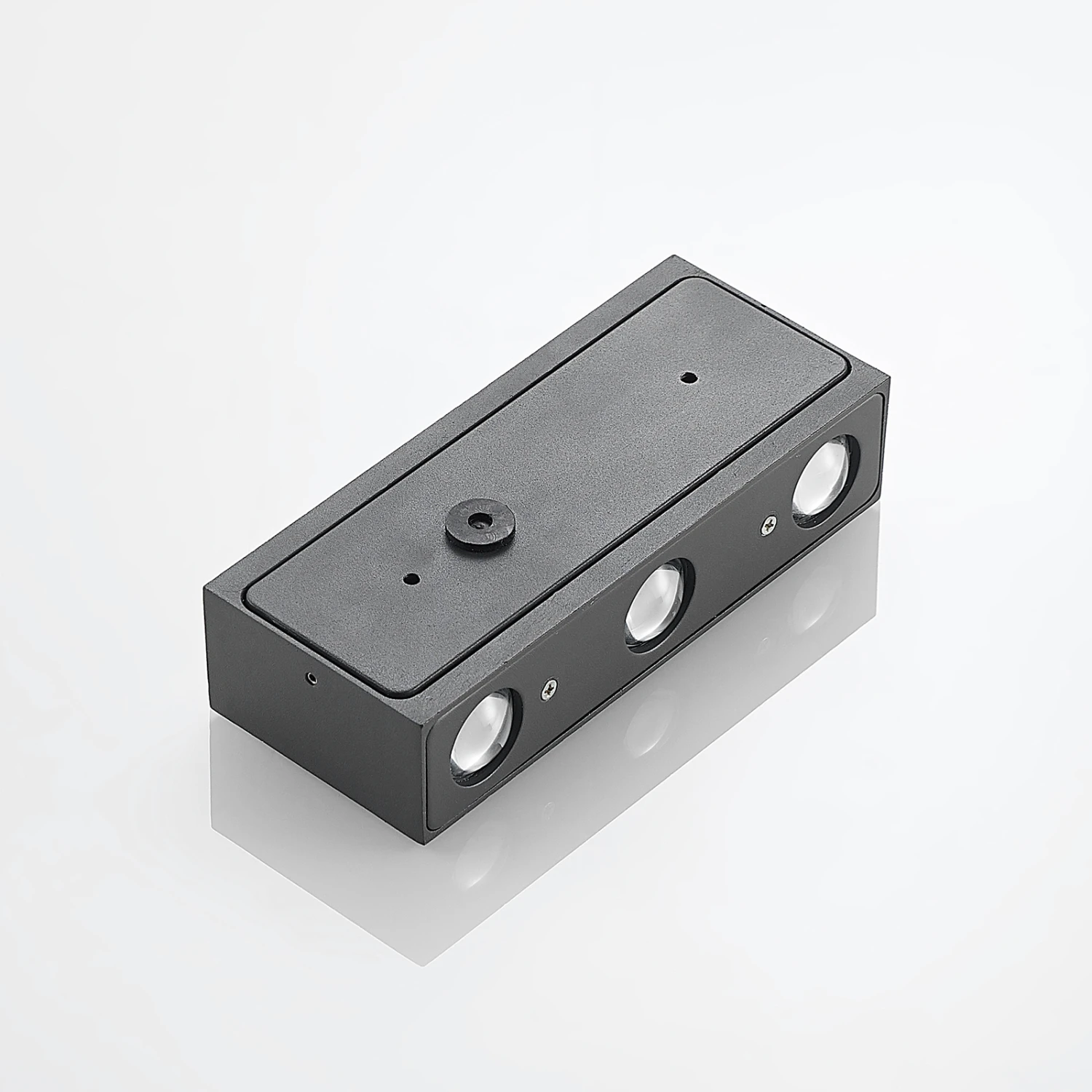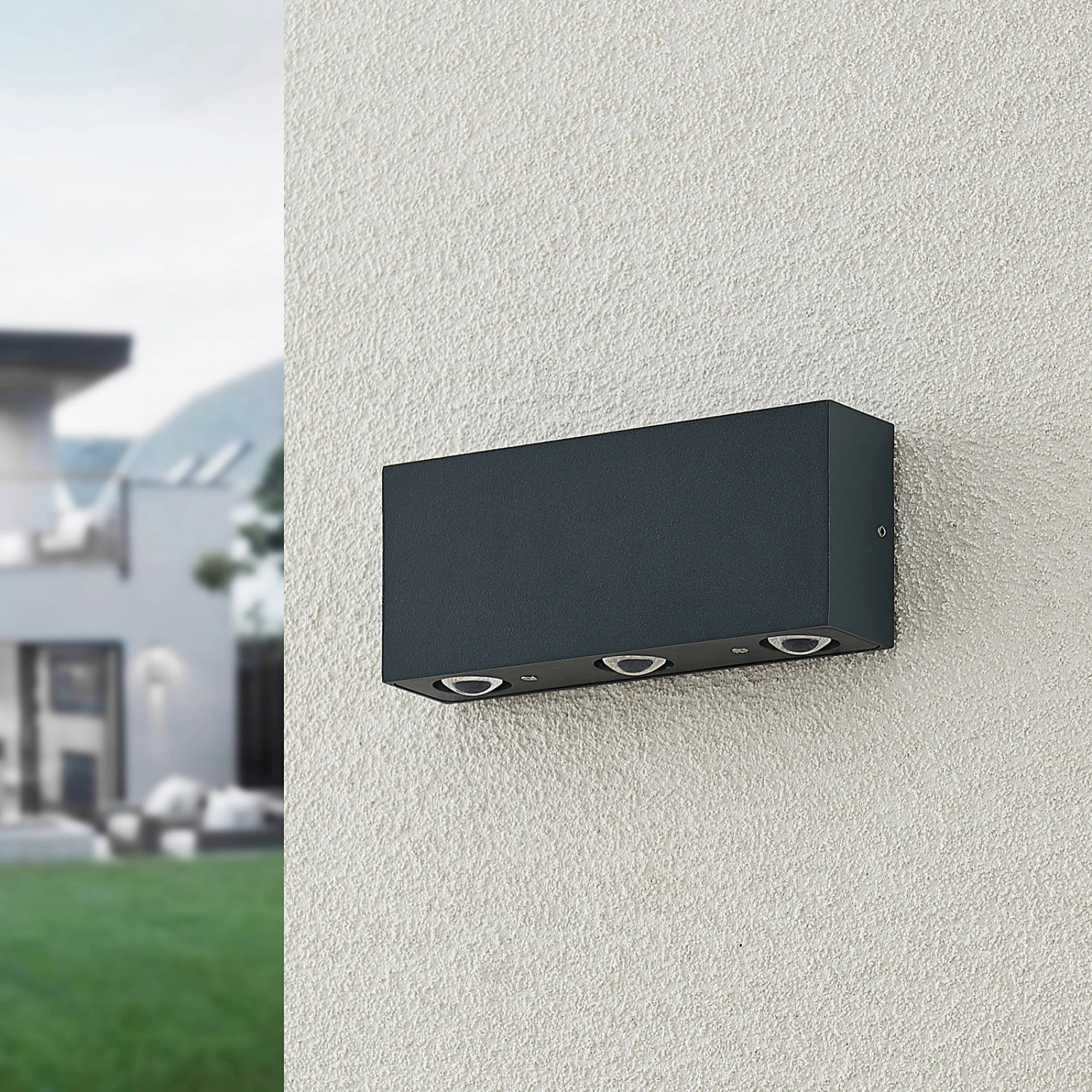 Le luminaire mural extérieur à LED Sarabi attire le regard par son aspect saisissant, qui se définit d’une part par sa forme géométrique clairement structurée et d’autre part par sa finition anthracite frappante.