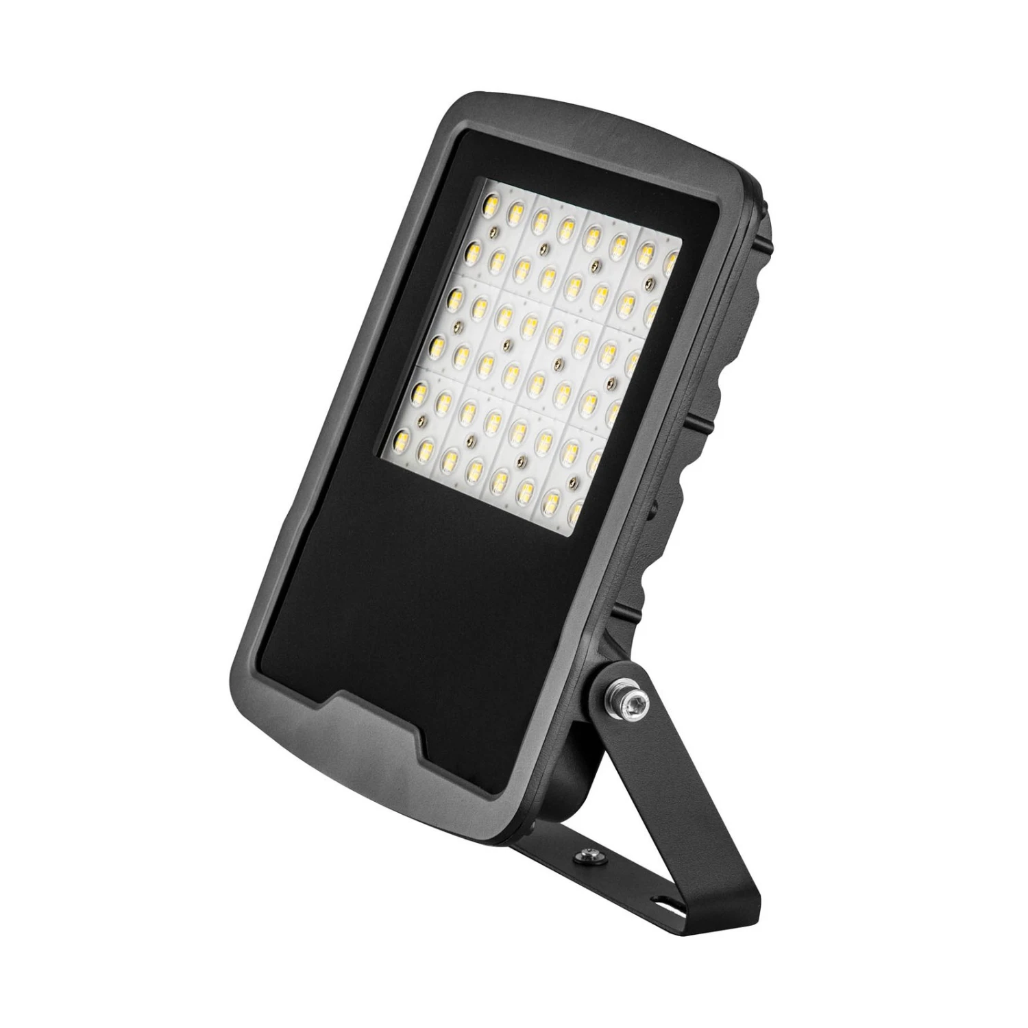Le projecteur d’extérieur plat à LED Panthera se compose d’un boîtier en aluminium avec un revêtement en poudre noir, d’un couvercle en verre transparent et de vis en acier inoxydable. Le projecteur à LED est idéal pour éclairer de grandes surfaces, sur des sites extérieurs tels que des halls de production et des entrepôts. Grâce au support de montage, l’alignement est possible pendant l’installation ; Panthera peut être monté de manière polyvalente sur les murs, les plafonds, les socles, les sols et les rails.