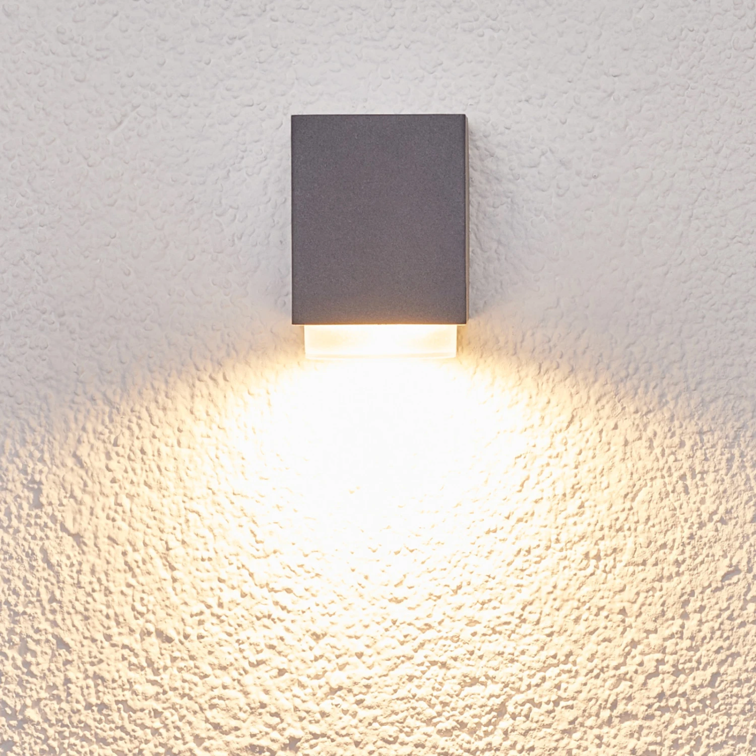 Applique d’extérieur Jovan gris foncé avec sortie de lumière unilatérale vers le bas