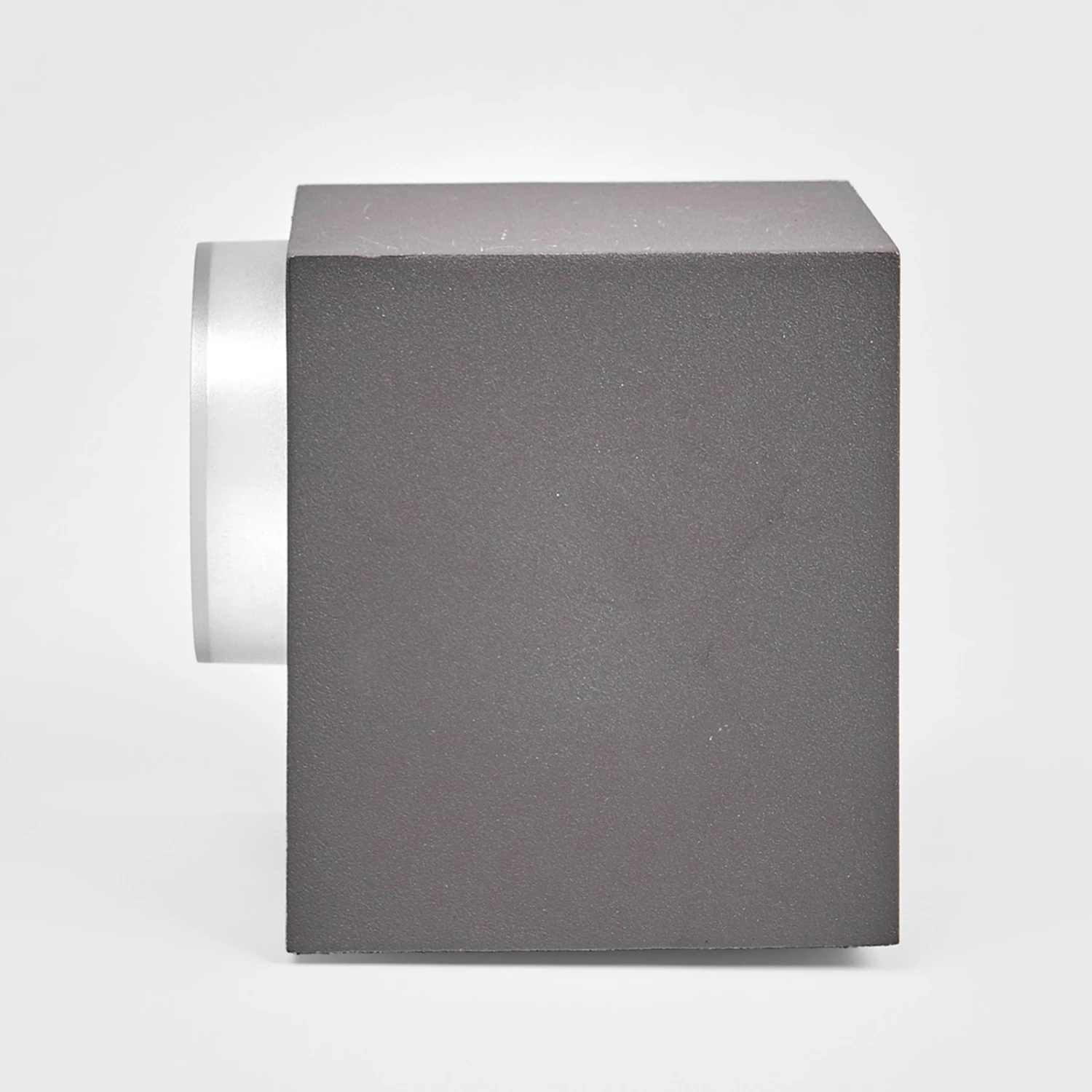 Jovan est une applique d’extérieur conçue pour les ampoules GU10 jusqu’à maximal 9 watts. Elle se compose d’un cube en aluminium gris foncé qui est équipé avec un cache en matériau synthétique sur la face inférieure. C’est ici que se trouve l’ampoule qui dirige sa lumière vers le bas. L’applique d’extérieur affiche un design moderne qui s’adapte à de nombreux environnements et elle garantit toujours un éclairage approprié, dès que la nuit vient de tomber.