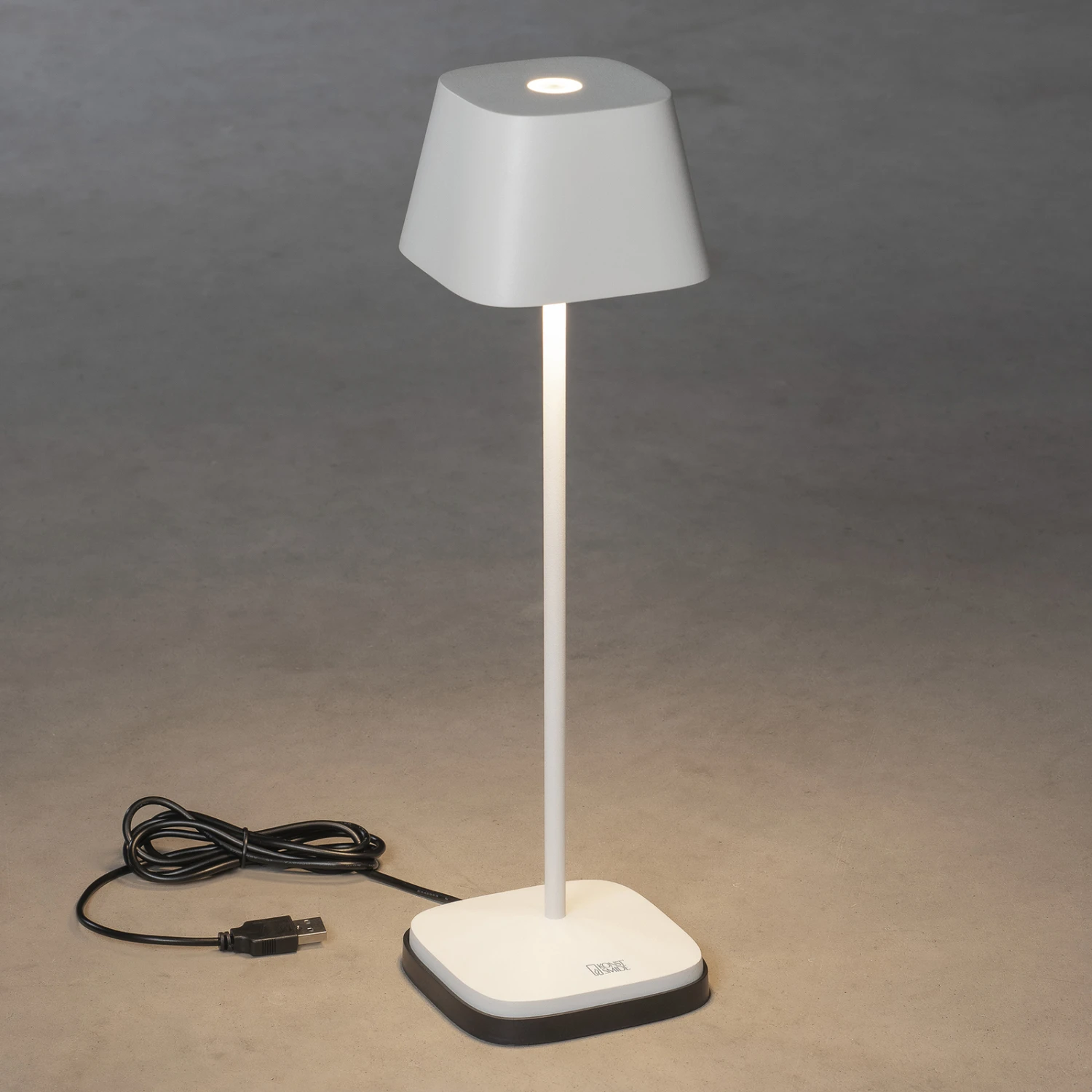 Lampe de terrasse LED flexible Capri comme lampe de table La lampe décorative Capri met parfaitement en scène une table sur la terrasse ou lors d’une garden-party. Grâce à la batterie intégrée, elle éclaire sans branchement électrique, ce qui évite de trébucher sur le câble. Capri peut non seulement être placée de différentes manières, mais sa lumière peut également être réglée de manière variable. L’interrupteur tactile sert à l’activer et à le désactiver et permet en outre de faire varier l’intensité lumineuse en continu de 100 à 5 % et de changer la température de couleur entre 2 700 et 3 000 K. Visuellement, la lampe de table monochrome en aluminium, avec son pied carré et son abat-jour rectangulaire se terminant légèrement vers le haut, est sobre et moderne. Les LED qui rayonnent vers le bas assurent une lumière indirecte agréable – station de charge avec câble USB incluse – durée de charge : env. 2,5 h – durée d’éclairage par charge : 9 h à 100 %, 20 h à 50 % de la puissance lumineuse