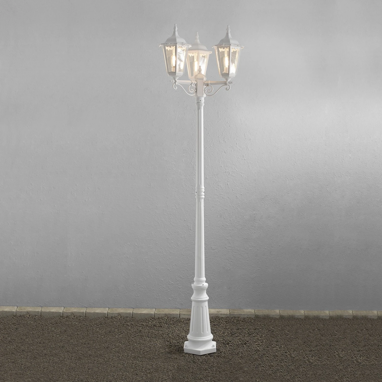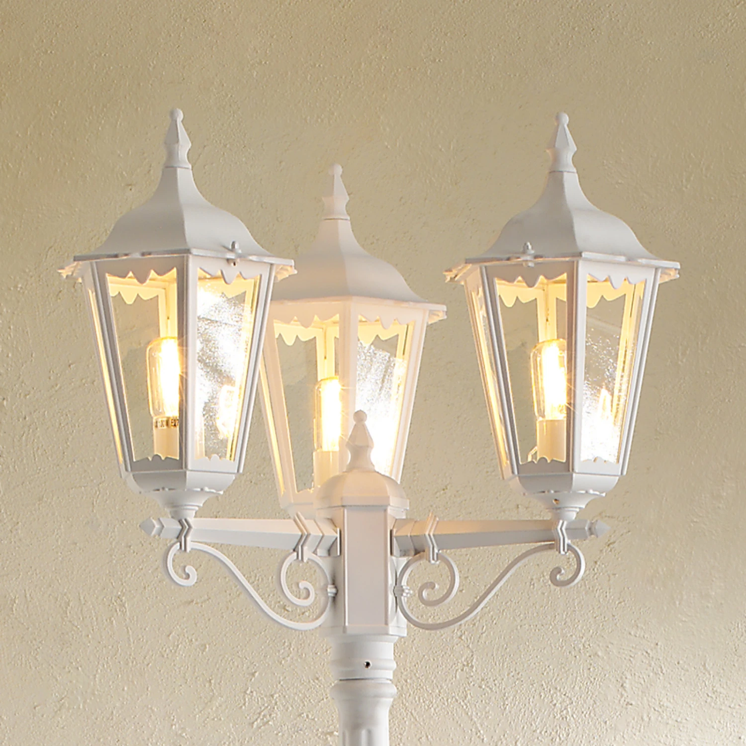 Le lampadaire FIRENZE a un style classique et antique du fait de ses trois jolies lanternes parfaitement disposées en triangle sur un poteau agréablement décoré. Ses vitres transparentes assurent un bon éclairage.