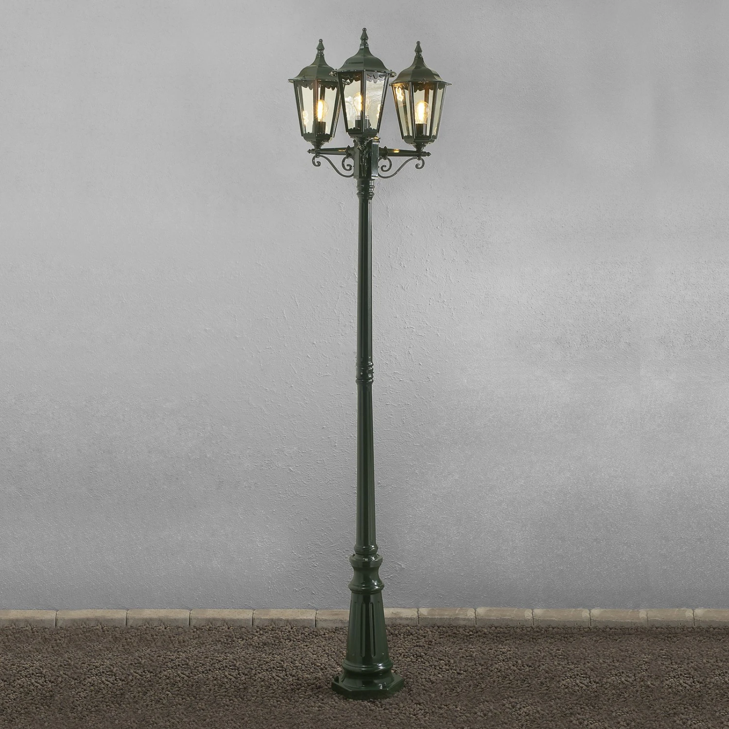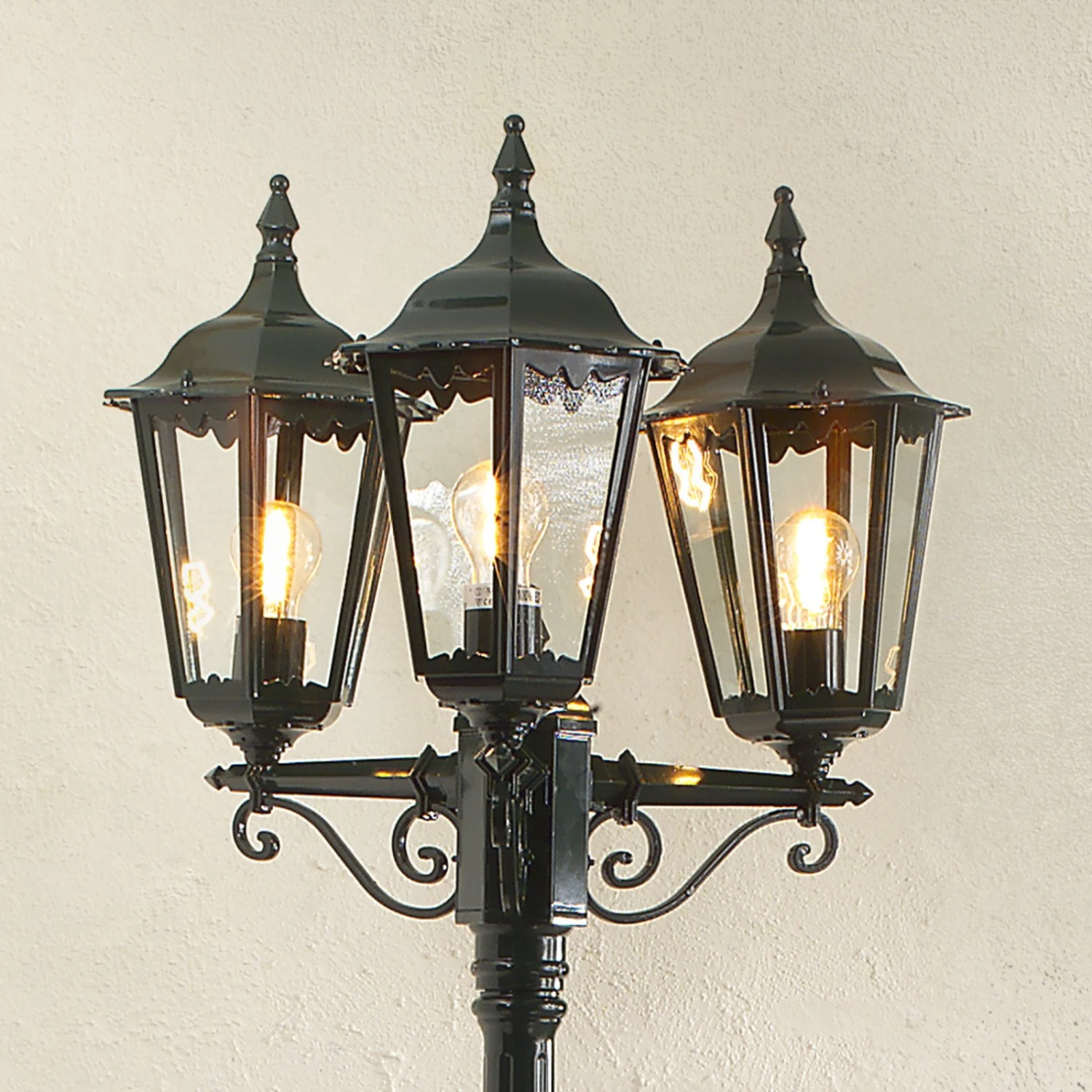 Le lampadaire FIRENZE a un style classique et antique du fait de ses trois jolies lanternes parfaitement disposées en triangle sur un poteau agréablement décoré. Ses vitres transparentes assurent un bon éclairage.