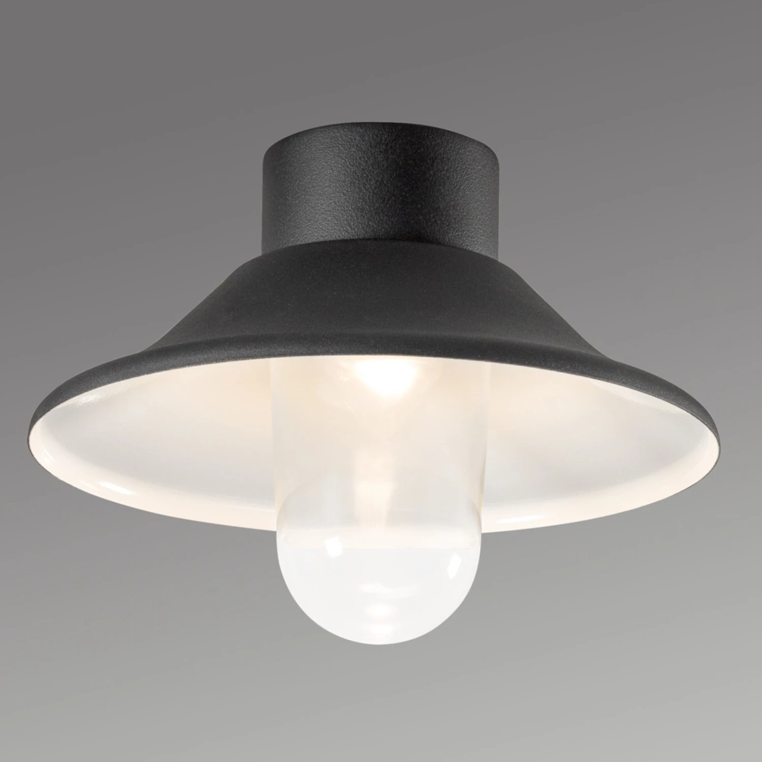 Le plafonnier Vega équipé de LED modernes et une source lumineuse contemporaine pour l’extérieur. La lumière est librement diffusée par l’abat-jour en verre transparent et est également reflétée par l’intérieur blanc de l’abat-jour en aluminium L’abat-jour est laqué en noir à l’extérieur.