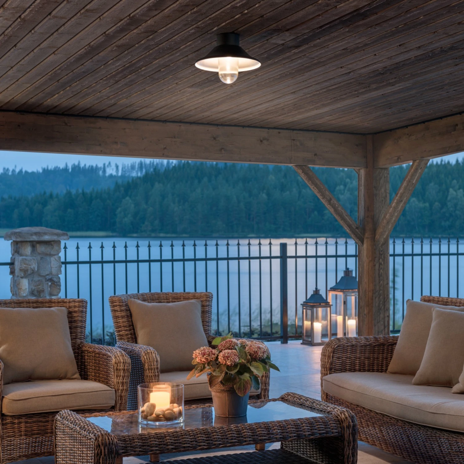 Plafonnier LED noir Vega avec abat-jour en verre transparent pour l’extérieur