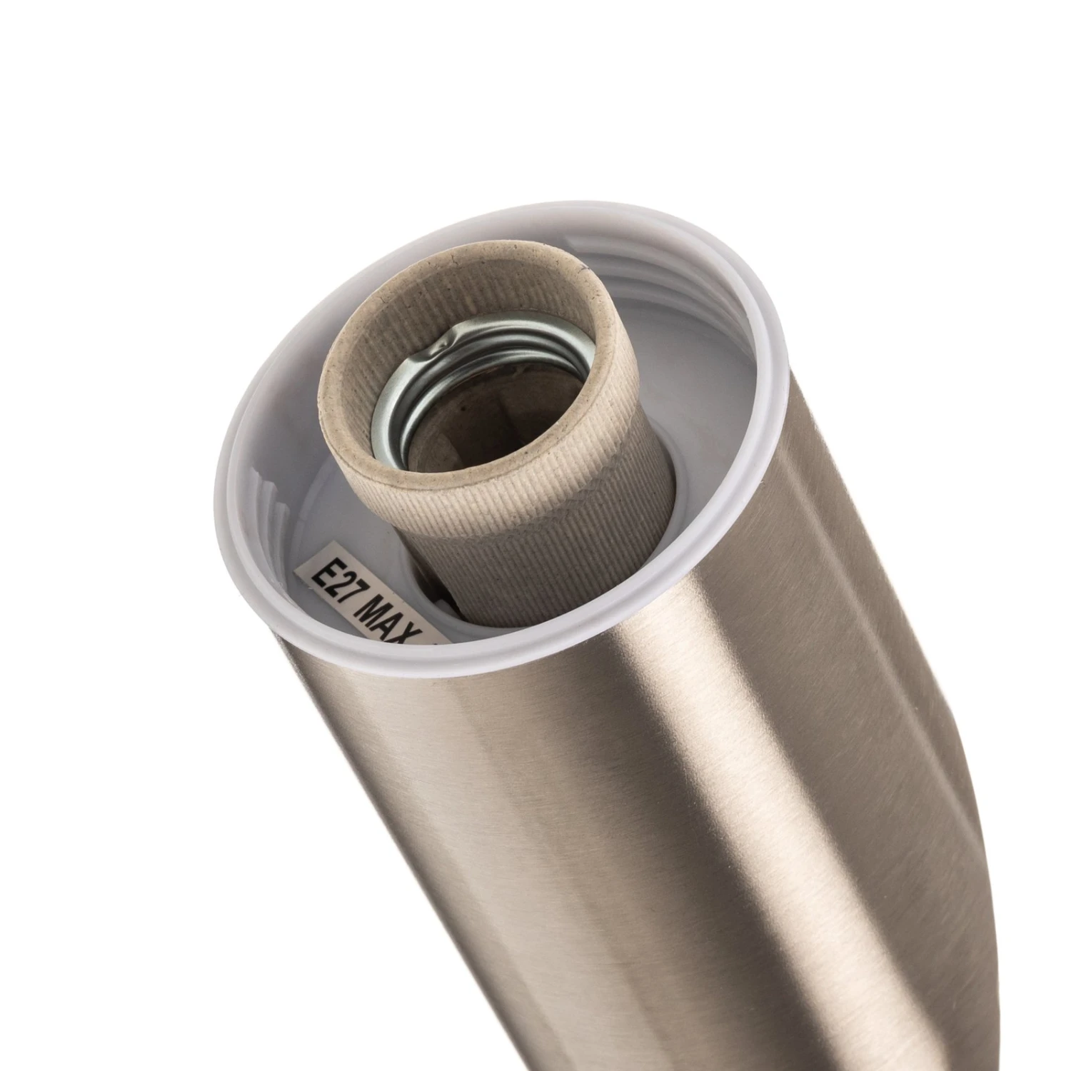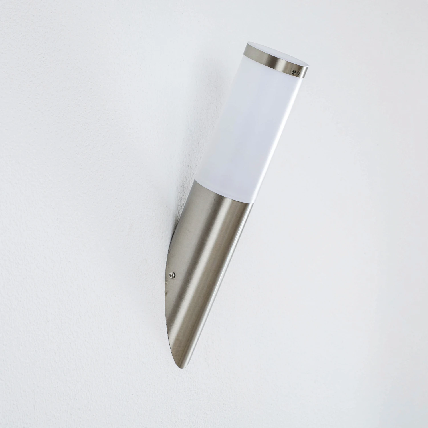 L’applique pour l’extérieur Kristof, constituée en partie d’inox, rappelle la forme d’un cylindre qui s’éloigne obliquement du mur. Au niveau de sa partie supérieure, cette applique pour l’extérieur est en polycarbonate opalescent, si bien qu’on a la garantie d’une répartition particulièrement douce de la lumière, associée à une bonne résistance contre les chocs. L’intérieur de cet abat-jour contient un culot E27 pouvant être garni de n’importe quelle ampoule. Kristof est une applique pour l’extérieur qui s’adapte particulièrement bien à une ambiance moderne.