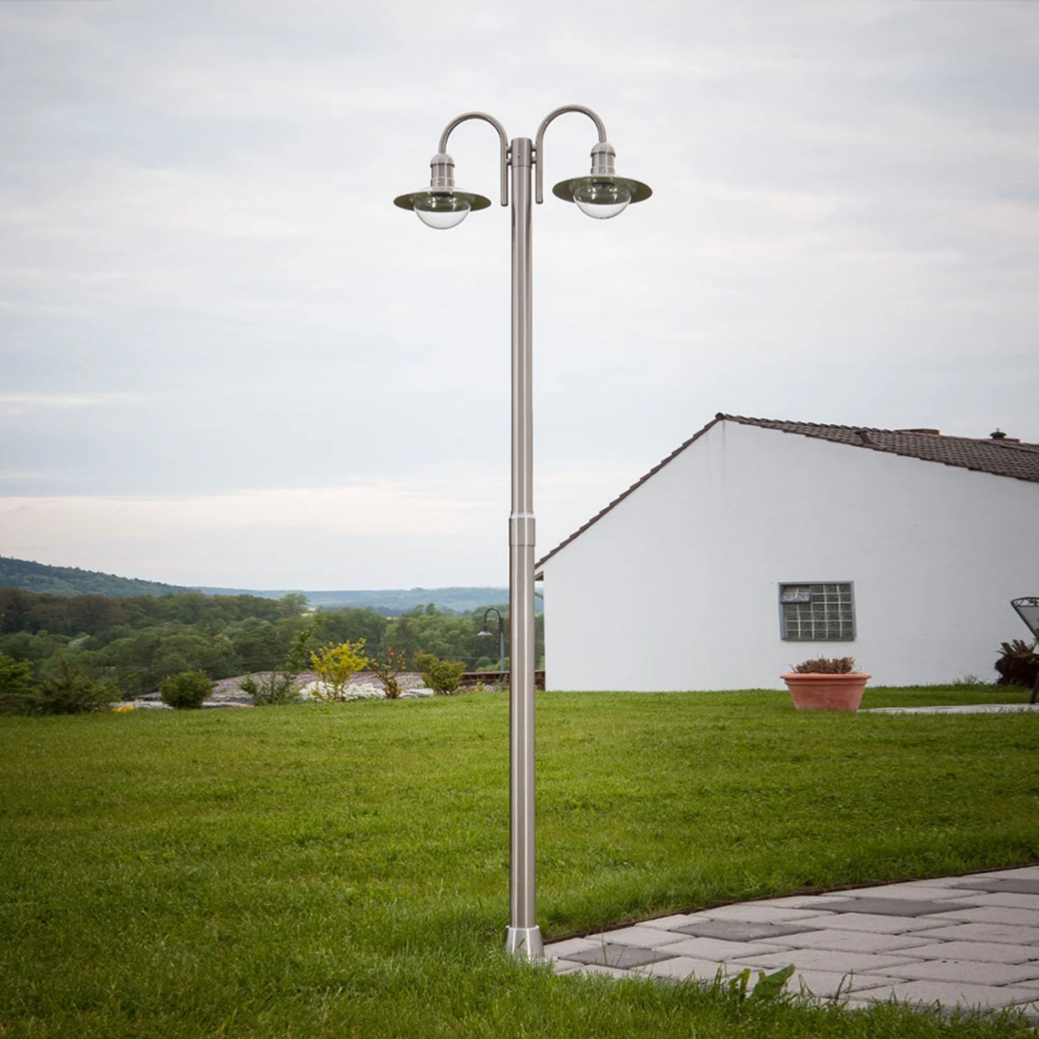 Ce n’est pas seulement à cause de son design symétrique esthétique que le lampadaire à deux lampes Damion fait belle impression. Il offre en plus une lumière agréable pour les routes et allées. Le design de Damion est indémodable, parce qu’il est en inox, un matériau qui restera moderne et intemporel.