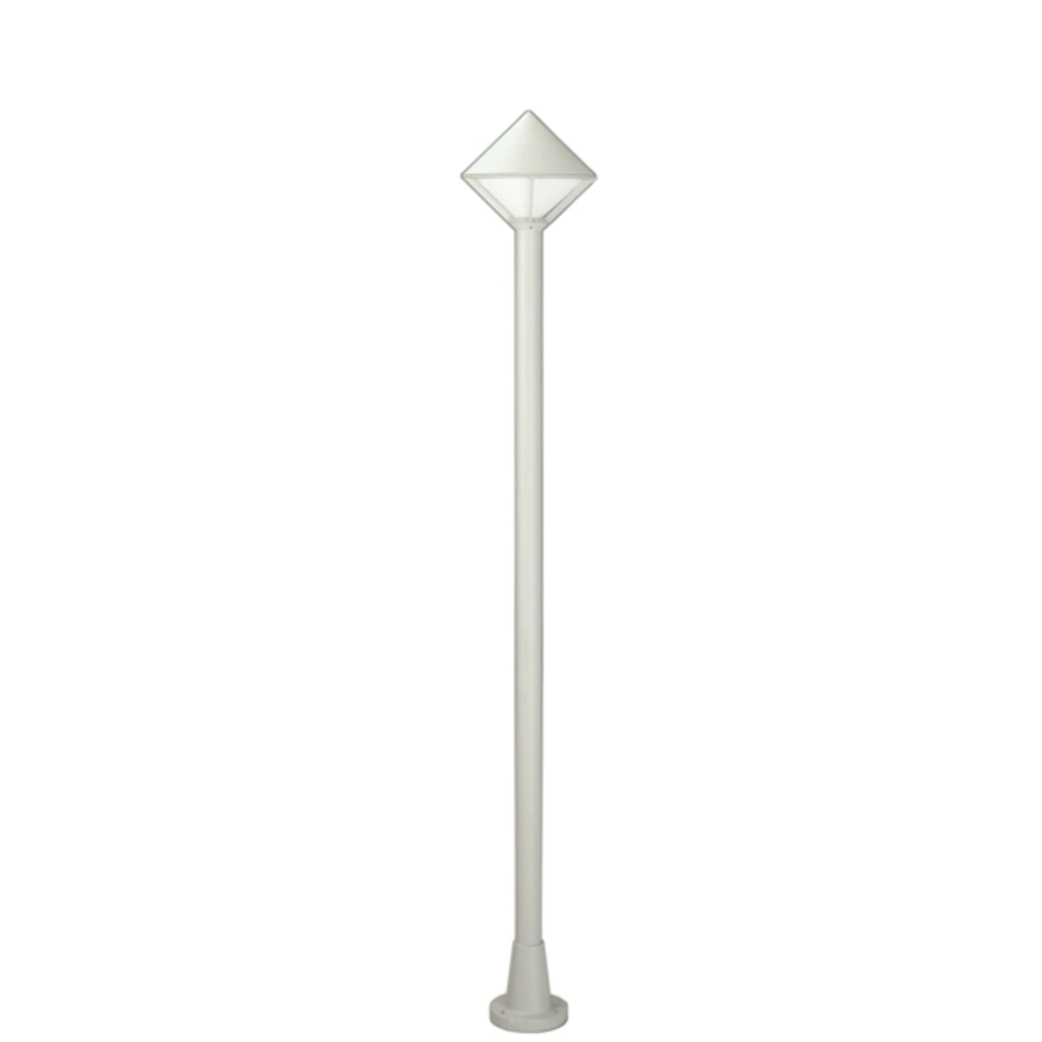 Ce lampadaire est fabriqué en Allemagne, ce qui garantit une longue durée de vie et un bon éclairage pour l’extérieur. Le poteau est en fonte d’aluminium et le diffuseur en verre opale. Grâce à un indice de protection IP44, le lampadaire résiste aux conditions météorologiques. Il peut être installé sur un support béton ou un boîtier enterré (à commander dans les accessoires).