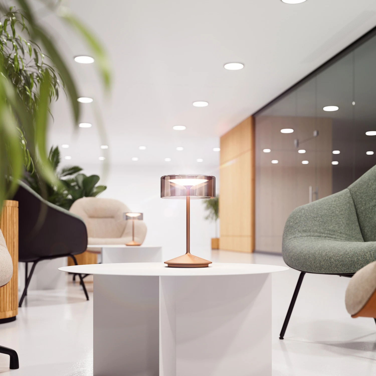Lampe de table LED Numotion intemporelle, à intensité variable, avec accumulateur La lampe de table LED à accumulateur Numotion est l’élément d’éclairage idéal pour tout le monde, avec de nombreuses fonctions pratiques et un design élégant. Cette combinaison permet de larges possibilités d’utilisation dans de nombreux domaines. Son abat-jour en verre véritable de haute qualité et sa structure en aluminium robuste ne promettent pas seulement une longue durée de vie, mais la lampe à accu au look rétro crée toujours une ambiance conviviale avec sa lumière indirecte et chaude. Sur le sideboard du salon ou comme lampe de lecture sur la table de nuit, elle attire à tout moment le regard. Grâce à son indice de protection élevé (IP54), elle peut également être utilisée à l’extérieur. Sa stabilité, sa longue durée d’éclairage et son fonctionnement sans fil la rendent flexible et simple, ce qui en fait une lampe idéale pour les tables de la gastronomie, mais aussi pour les particuliers sur la terrasse ou le balcon. – Temps de charge de la batterie env. 5 – 7 heures – Durée de vie de la batterie env. 12 heures à 100 % de puissance Numotion est graduable en continu et dispose de la fonction de choix entre deux couleurs de lumière. Sa durée d’éclairage peut aller jusqu’à 12 heures, après quoi elle peut être rechargée sans problème grâce à la fiche magnétique et au bloc d’alimentation – en allumant la lampe, elle émet une lumière blanche chaude de 2.700 K – en appuyant une deuxième fois sur le bouton d’allumage, la température de couleur passe à 2.200 K – en maintenant l’interrupteur tactile enfoncé, l’intensité lumineuse augmente ou diminue graduellement