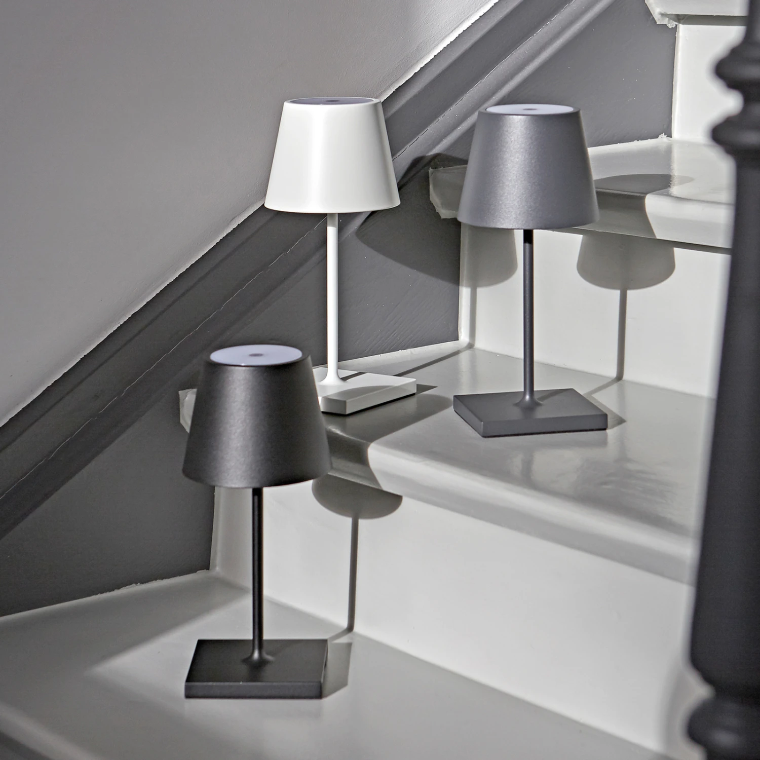 Lampe de table LED portable à intensité variable Nuindie mini pour l’intérieur et l’extérieur La série Nuindie de Sigor est une lampe compacte à piles qui s’intègre facilement dans différents environnements grâce à sa forme intemporelle et évidente. Qu’il s’agisse d’un camping, d’un restaurant ou d’une lampe de lecture d’intérieur, elle offre partout une bonne lumière, en toute simplicité. Dotée d’un abat-jour rond, d’un pied carré stable et fabriquée en aluminium, cette lampe de table séduit avant tout par sa longévité et sa qualité. Mais Nuindie mini se distingue également par ses fonctions pratiques et ses dimensions compactes qui la mettent en valeur même sur les petites tables. La lampe à accu assure un éclairage sans éblouissement et une lumière d’accentuation agréable vers le haut, qui peut être variée sans effort grâce à l’interrupteur tactile. De plus, il est possible de choisir entre deux couleurs de lumière blanc chaud. La lampe de table LED est équipée d’une batterie et fonctionne donc entièrement sans fil. Pour la recharger, il suffit de la brancher sur une prise de courant à l’aide du bloc d’alimentation USB fourni et du câble de recharge de 1,2 m de long avec fiche magnétique Easy Connect. – Temps de recharge de 5 à 7 heures – Durée d’éclairage jusqu’à 12 heures à 100 % de puissance