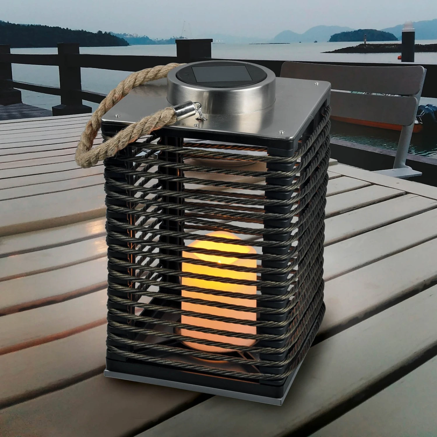 Lampe de décoration extérieure LED Santana avec panneau solaire et effet de flammes