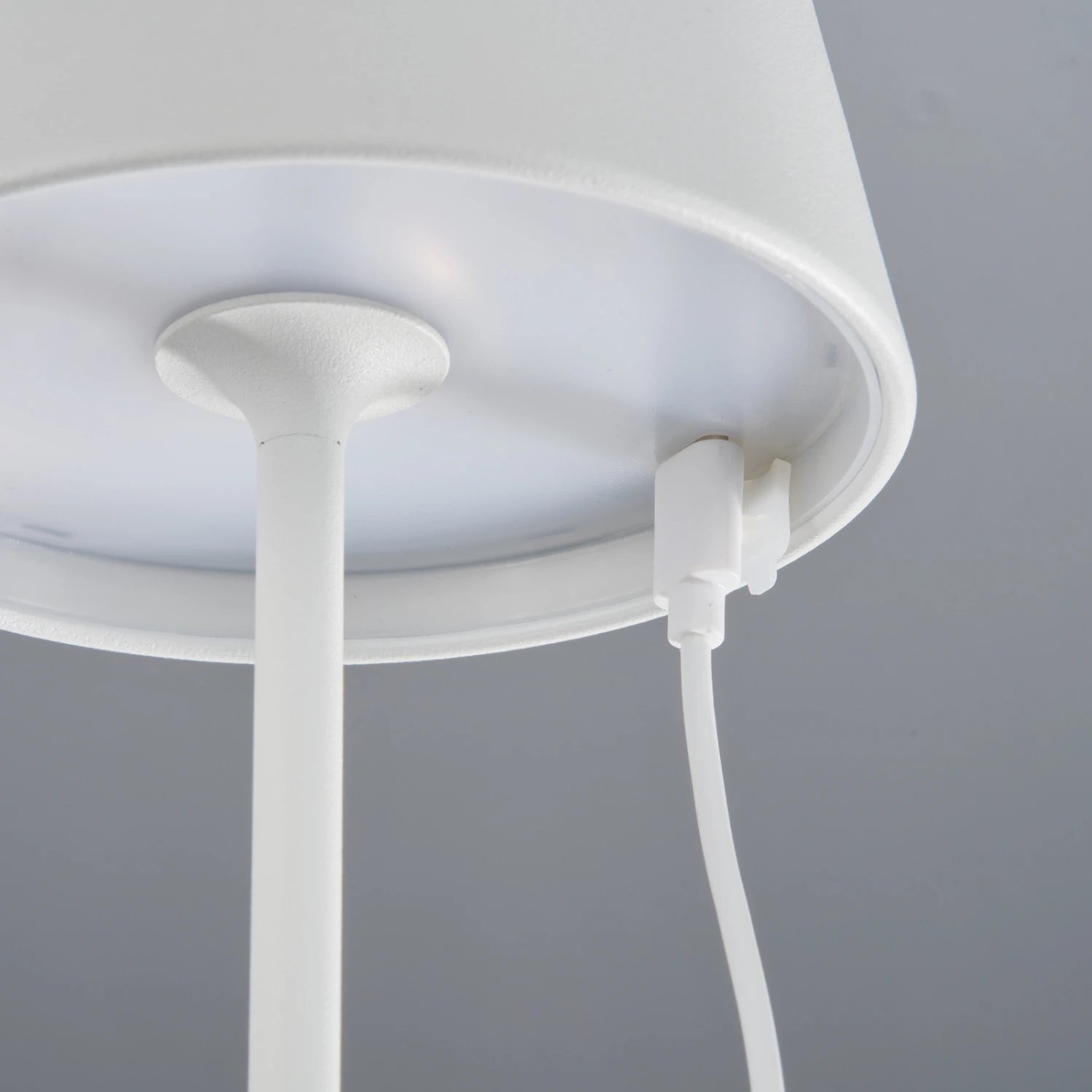 Lampe de table LED Cosenza avec accu pour l’extérieur, rechargeable via USBLa lampe de table LED Cosenza alimentée par accu offre une multitude de possibilités d’éclairage et peut être utilisée non seulement à l’intérieur comme lampe pratique, mais aussi à l’extérieur, lorsque l’on veut se mettre à l’aise sur le balcon ou la terrasse. Grâce à son indice IP44, il résiste à des conditions climatiques pour lesquelles d’autres luminaires ne sont pas conçus. Cosenza est la solution élégante à utiliser partout, car elle dispose d’une batterie endurante qui promet une longue durée d’éclairage et qui peut être rechargée sans problème via un câble USB. La lampe peut diffuser une lumière blanche chaude ou colorée et son intensité peut être réglée à l’aide du variateur sensoriel. – Durée d’éclairage jusqu’à 7,5 heures selon le réglage – Durée de charge 0 is 100 a. 7 heures – Recharge via câble USB sur chargeur USB (courant de charge min. 1 A)