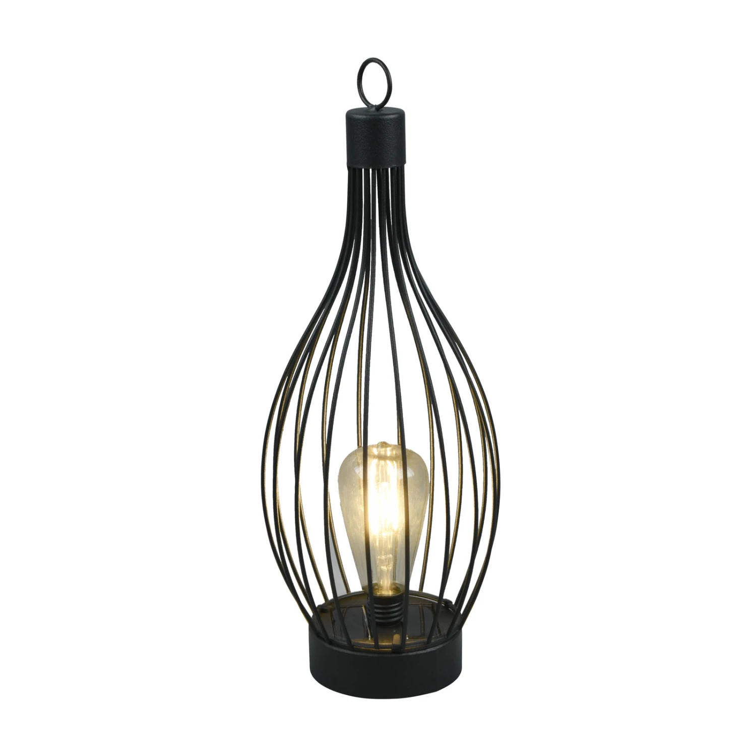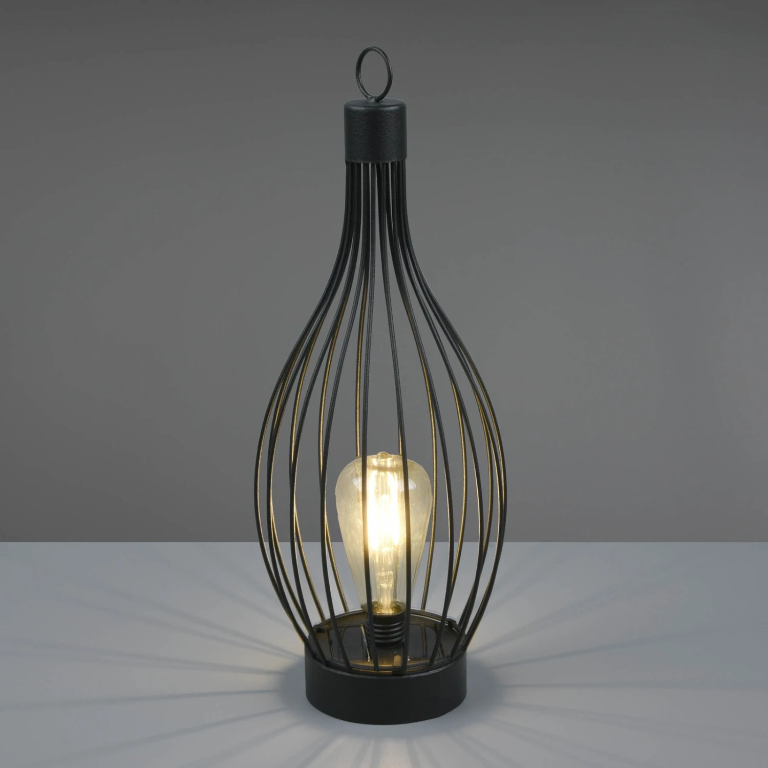 La lampe d’extérieur à LED Mairana permet de créer de jolis accents lumineux dans le jardin, sur la terrasse ou le balcon. Conformément au type de protection IP44, elle est résistante aux projections d’eau. Le luminaire est composé d’entretoises métalliques verticales en finition noire et a un petit air oriental. L’allumage peut se faire manuellement ; Mairana dispose en outre d’un capteur de lumière du jour qui active la source lumineuse LED en forme de lampe rustique à filaments dans l’obscurité. Grâce à son panneau solaire et à sa batterie, Mairana peut être utilisée pour la décoration extérieure indépendamment de toute source d’énergie externe.