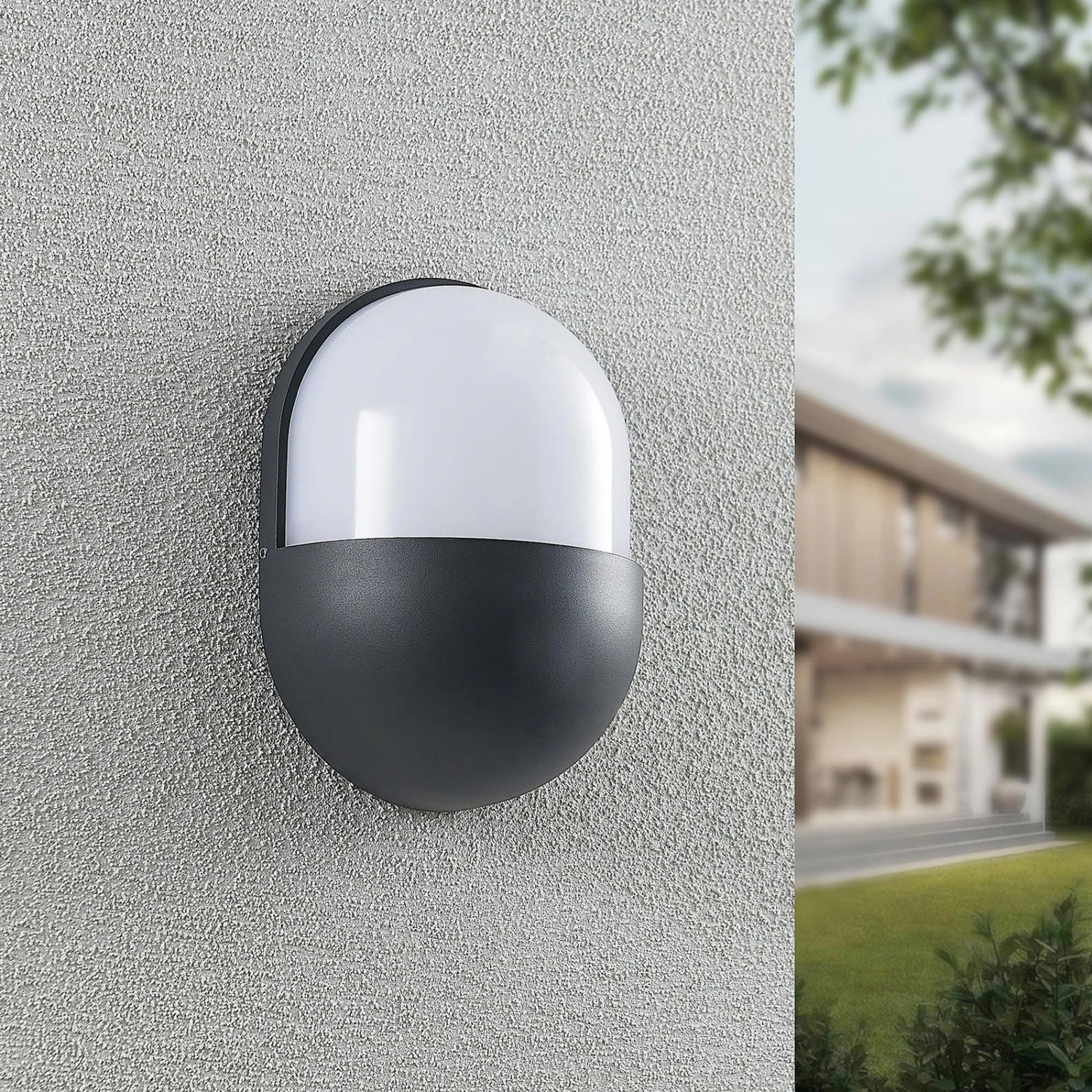 Dianko est la compagne idéale pour une entrée. L’applique murale ronde à LED pour l’extérieur est en aluminium et dispose d’un diffuseur en plastique de couleur blanche. Derrière ce diffuseur se trouvent des LED fixes qui génèrent un éclairage blanc chaud. L’indice de protection IP54 protège la lampe contre la poussière et les projections d’eau et la rend parfaite pour une terrasse couverte ou d’autres endroits extérieurs. En combinant l’applique murale d’extérieur LED Dianko avec d’autres lampes de sa série, on peut créer une impression d’ensemble harmonieuse. Elle parvient en outre à mettre parfaitement en valeur une maison, même la nuit.