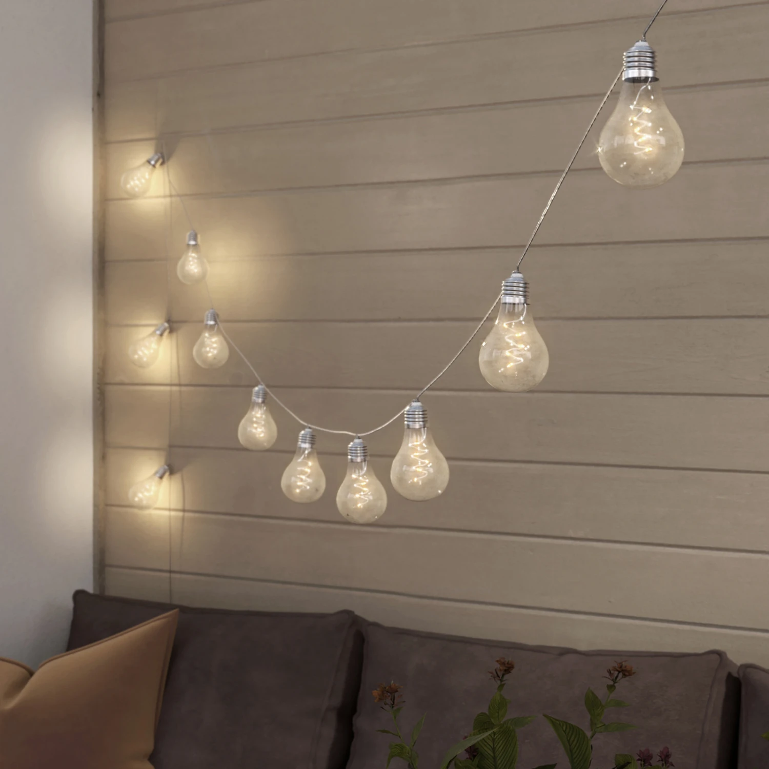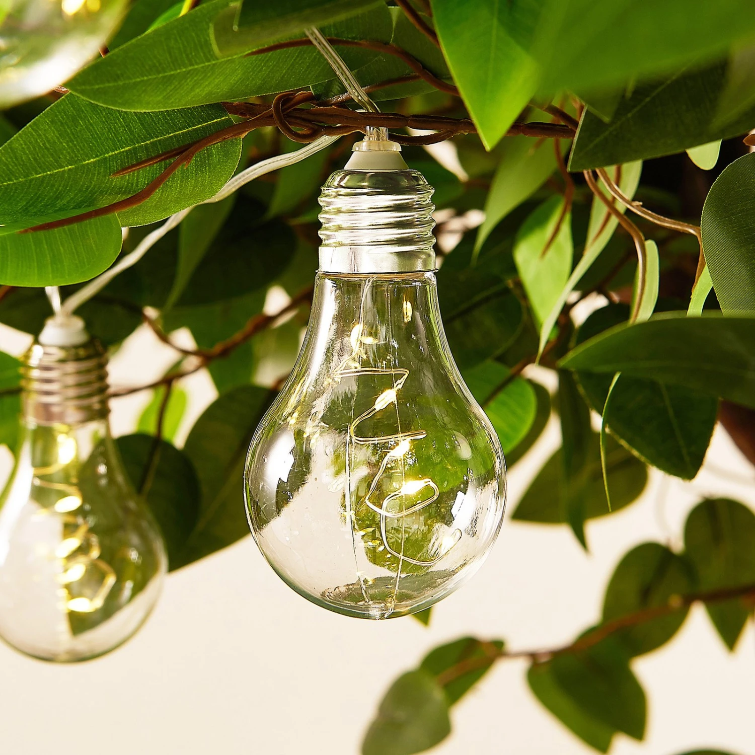 La chaîne lumineuse LED Lampini se présente comme un objet lumineux extrêmement décoratif qui attire tous les regards. Elle dispose d’un total de 10 sources lumineuses qui imitent l’apparence d’une ampoule classique. Les abat-jour ainsi que le panneau solaire fourni sont fabriqués en plastique durable.