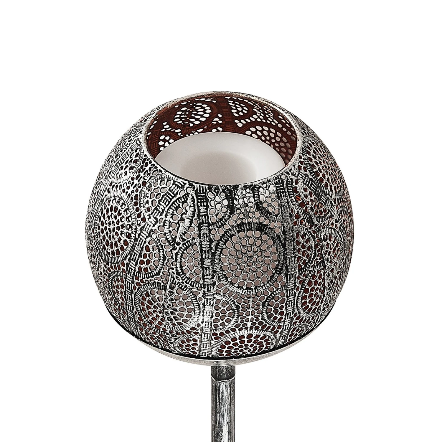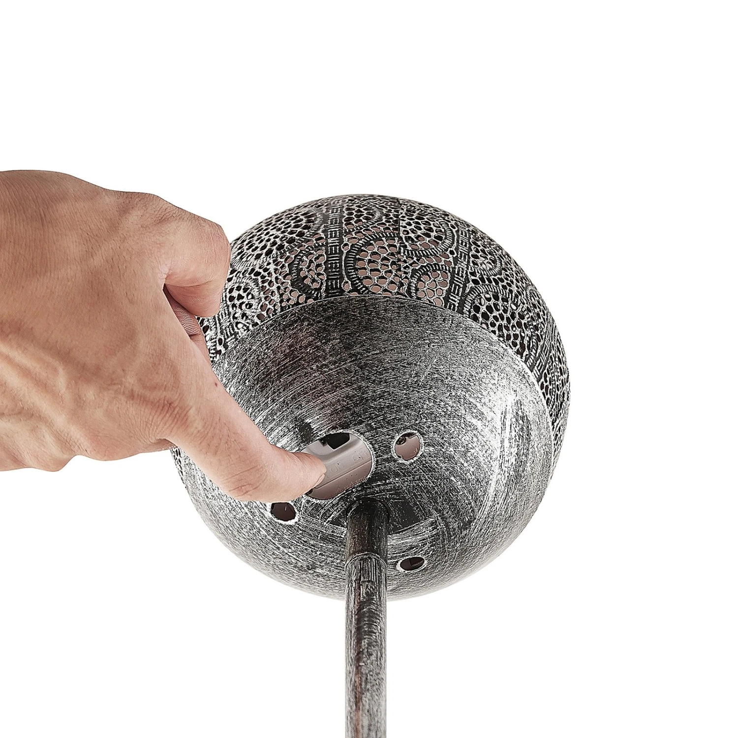 Miliana convainc par sa note orientale, car le motif estampĂ© sur l’abat-jour en forme de boule est trĂšs artistique et fait naĂźtre un jeu d’ombre et de lumiĂšre qui reprĂ©sente bien plus qu’une simple lueur, mais qui dĂ©ploie aussi un effet dĂ©coratif et fait en sorte que l’on se sente particuliĂšrement bien Ă l’extĂ©rieur lors d’une douce soirĂ©e d’Ă©tĂ© avec des amis ou la famille. L’extĂ©rieur de la boule en fer est en argent brossĂ©, tandis que l’intĂ©rieur laisse transparaĂźtre un ton cuivre dorĂ© qui reflĂšte la lumiĂšre de maniĂšre chaude et confortable. La batterie assure une durĂ©e d’Ă©clairage de 6 heures maximum lorsque le soleil l’a entiĂšrement chargĂ©e. L’ancrage se fait par un piquet de terre, ce qui garantit une fixation sĂ»re et solide dans le sol