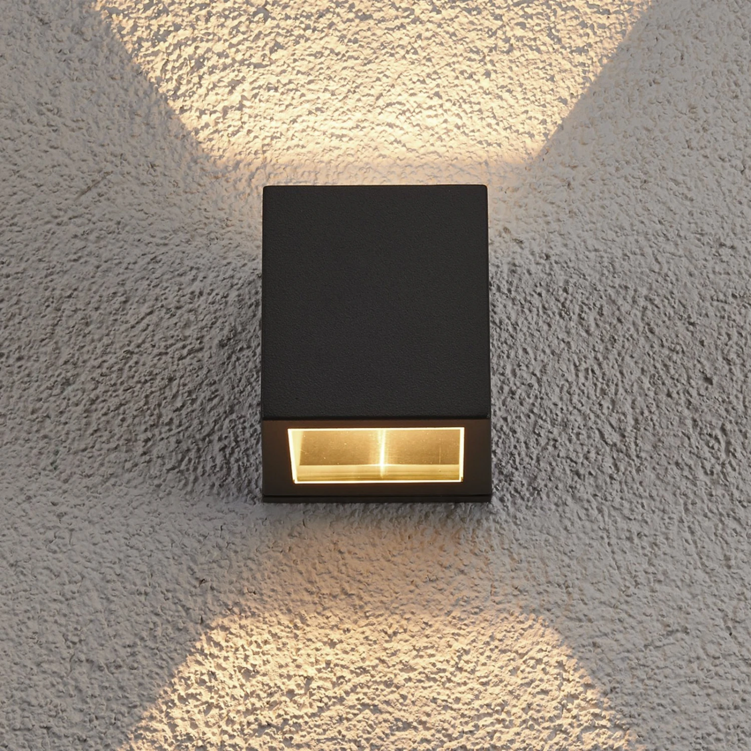 Applique murale d’extérieur Maurice en forme de cube, lot de 4L’applique murale d’extérieur halogène Maurice garantit un plaisir durable grâce à sa forme simple et peut être utilisée de diverses manières à l’extérieur. Les beaux effets de lumière indirecte sont remarquables : ils ne sont pas seulement esthétiques, ils offrent chaque nuit l’orientation nécessaire dans l’obscurité. L’indice de protection IP54 offre une protection suffisante contre la pénétration de la poussière et les projections d’eau. Ici, Maurice est disponible en pack pratique de 4.