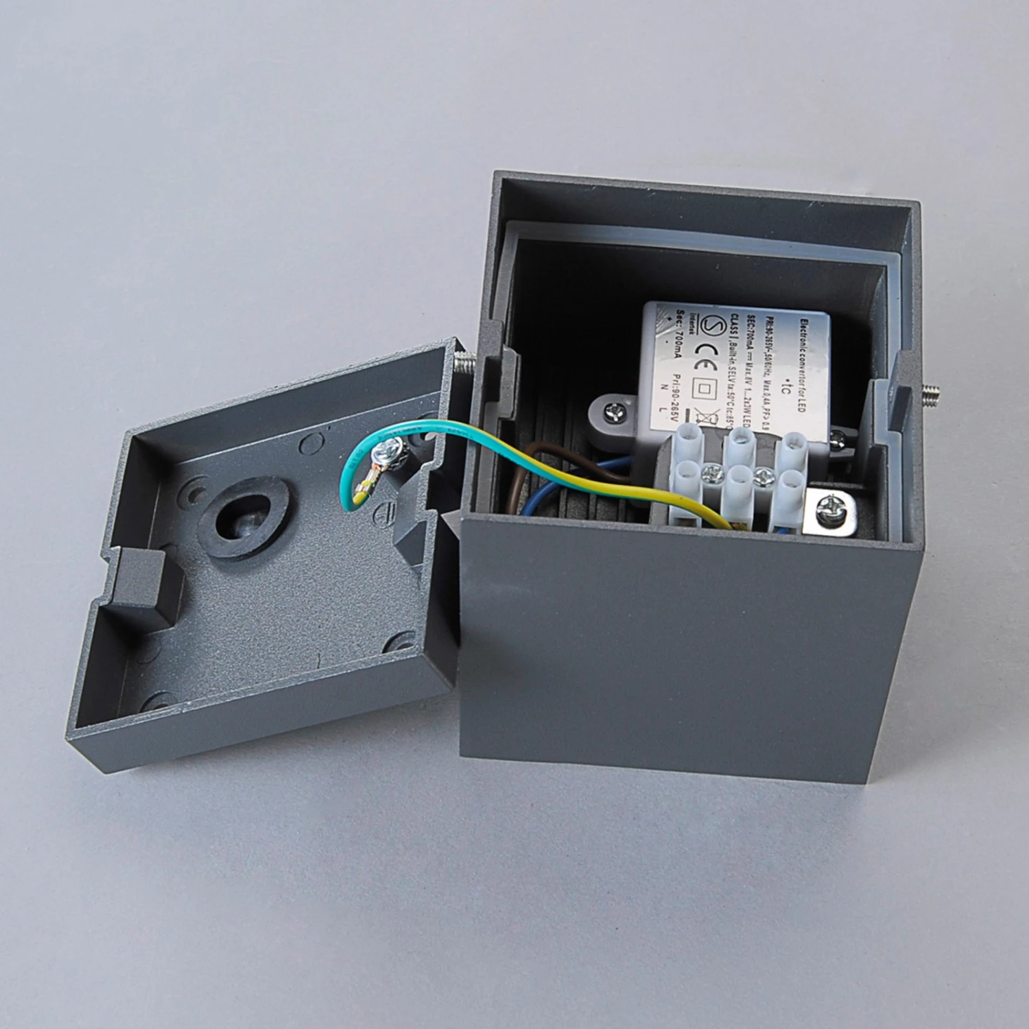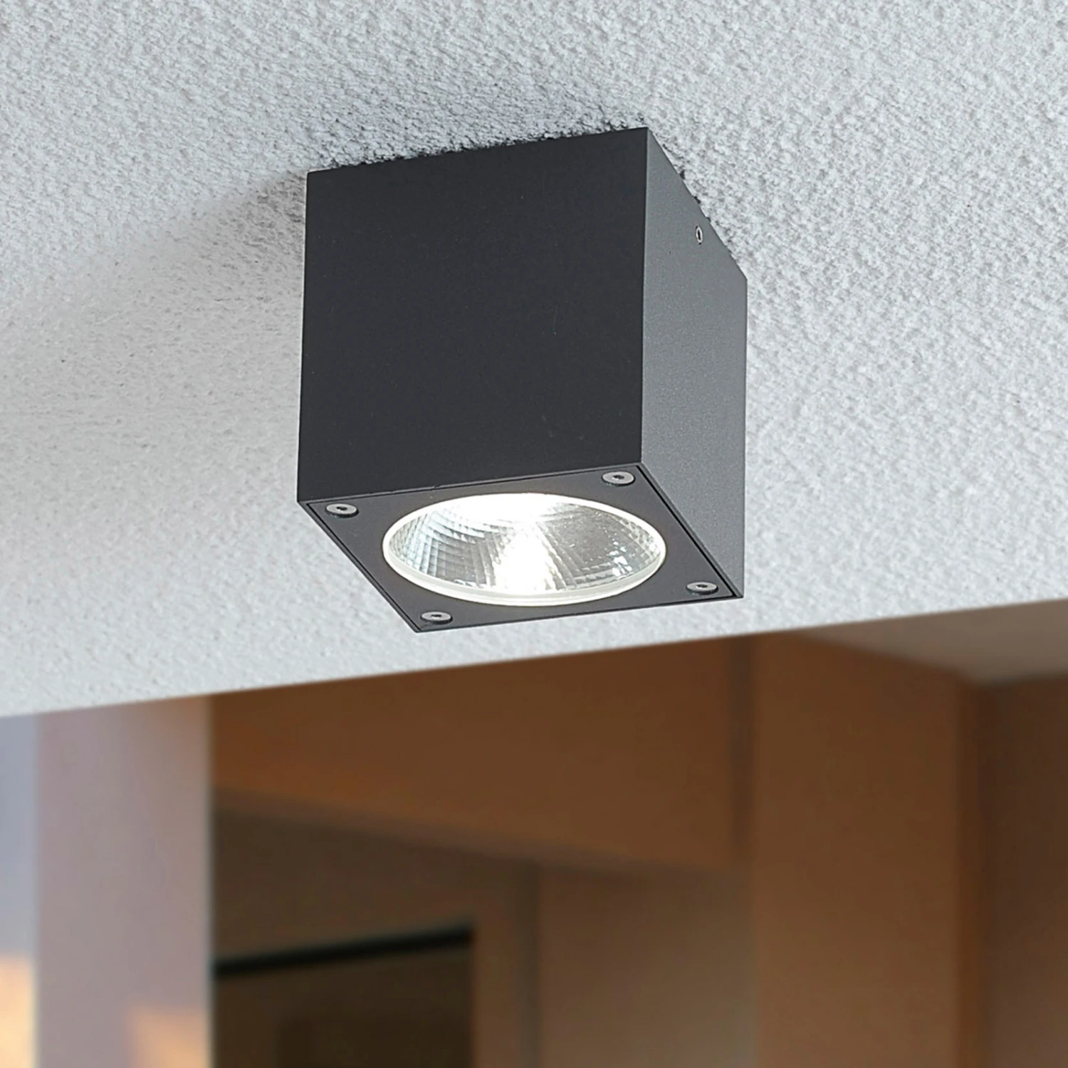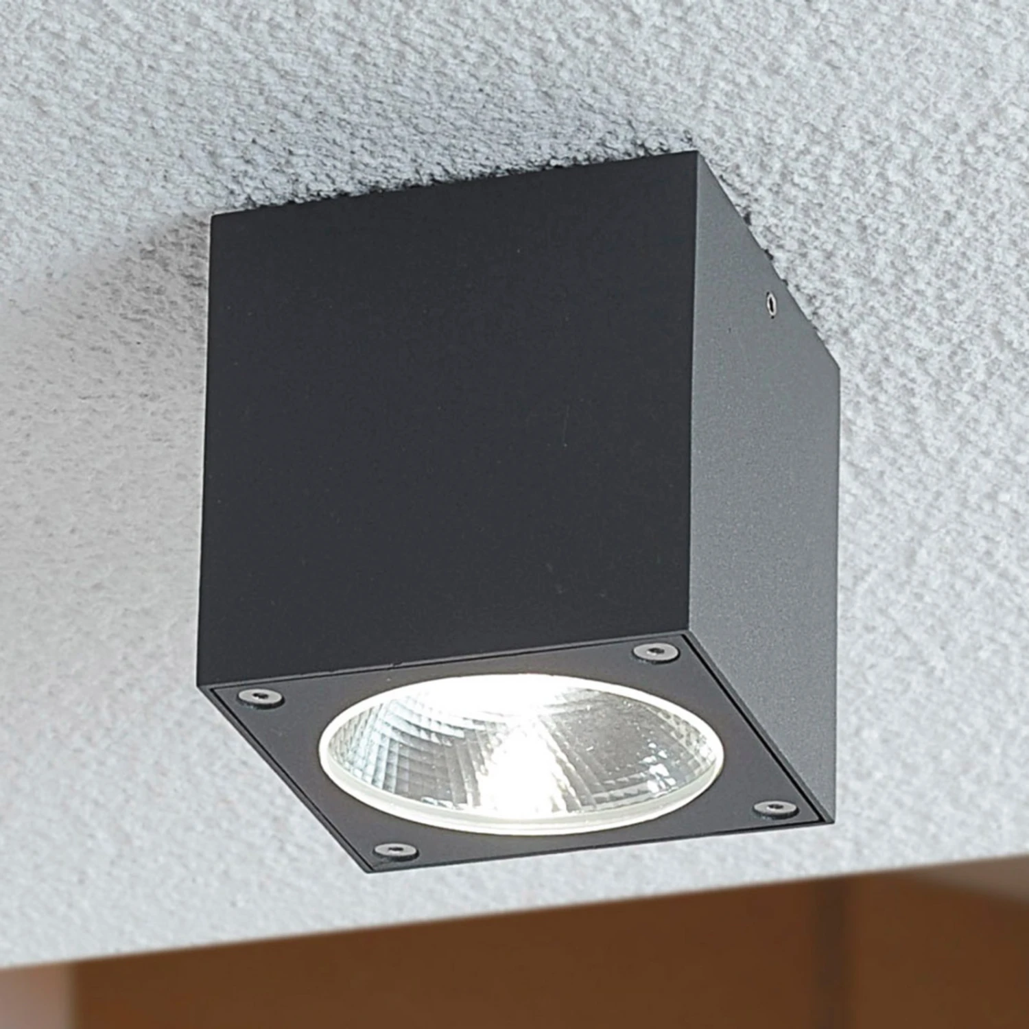 Cordy est un plafonnier LED en aluminium pour l’extérieur de la couleur intemporelle gris graphite, ce qui offre de nombreuses possibilités d’utilisation. Cordy affiche une forme cubique et l’ampoule est intégrée au milieu du luminaire avec la technologie LED moderne « chip-on-board ». Grâce à la forme spéciale du réflecteur intérieur, la lumière blanc chaud est diffusée en faisceau étroit vers le bas, ce qui permet d’illuminer des zones choisies. Cordy convient très bien pour une installation sous abri de tout genre, que ce soit sur une terrasse, un balcon ou une entrée de maison.