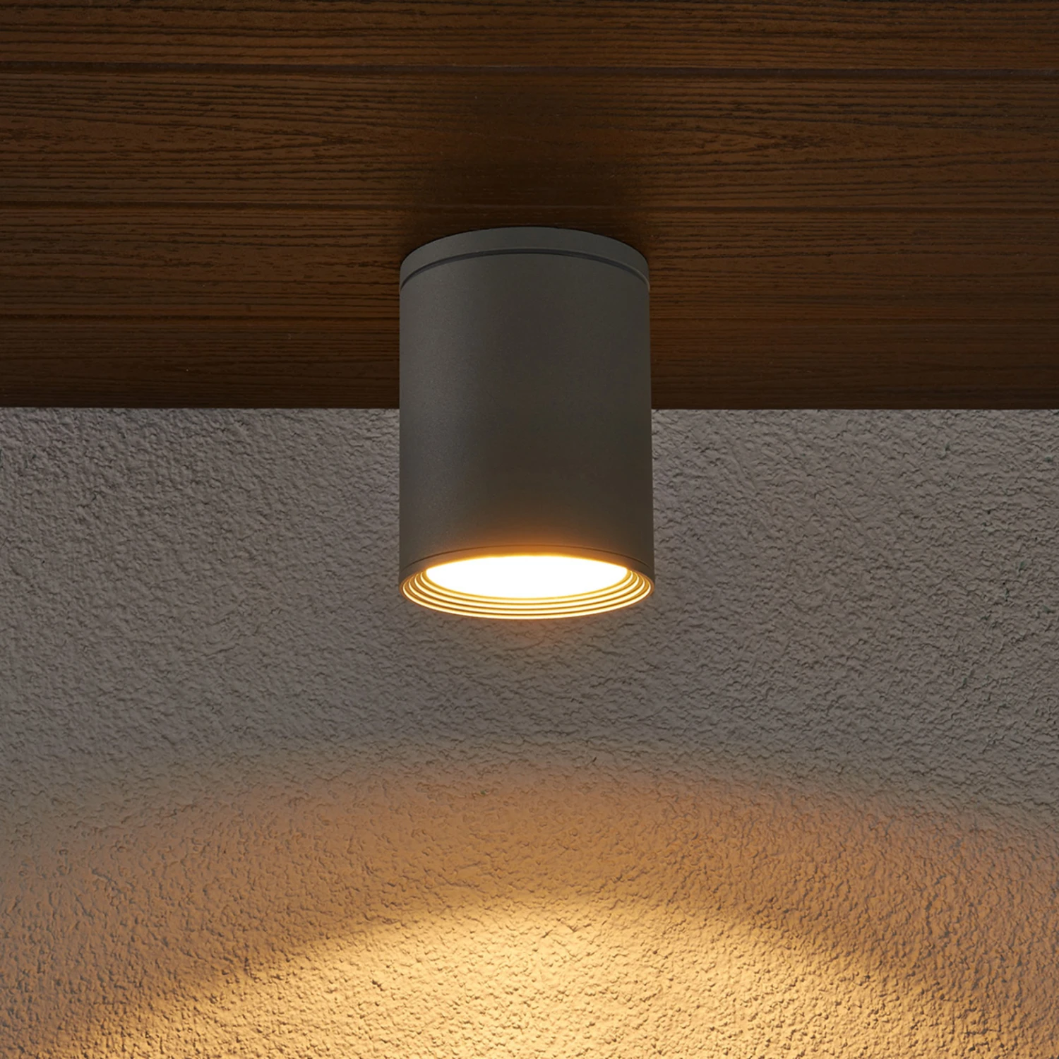 On a souvent tendance à penser que les plafonds n’existent qu’à l’intérieur, mais à tort, car il existe les toitures de terrasses ou les avancées de toit, qui sont des emplacements parfaits pour un plafonnier. Il est important que le luminaire choisi soit doté d’un indice de protection suffisamment élevé, afin que ni la poussière, ni les projections d’eau ne puissent y pénétrer. L’indice IP 54 s’avère idéal dans ce cas précis. La partie inférieure du corps de lampe en aluminium du plafonnier Minna est dotée d’une vitre en verre trempé. Ce luminaire fonctionne avec des ampoules à réflecteur PAR30 de type E27.
