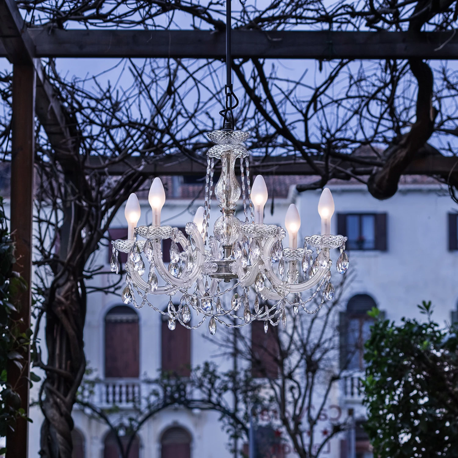 Le lustre LED Drylight S6 est une source d’éclairage luxueuse et originale sur les terrasses privées ou à l’extérieur des restaurants ou des hôtels où il attirera à coup sûr tous les regards. Il se compose d’un matériau synthétique renforcé de fibres de verre et avec le l’indice de protection IP65, il est étanche à la poussière et est également protégé contre les projections d’eau. Les six LED qui sont installées en haut dans les caches en matériau synthétique ressemblent à des ampoules flammes. Le transformateur est intégré.