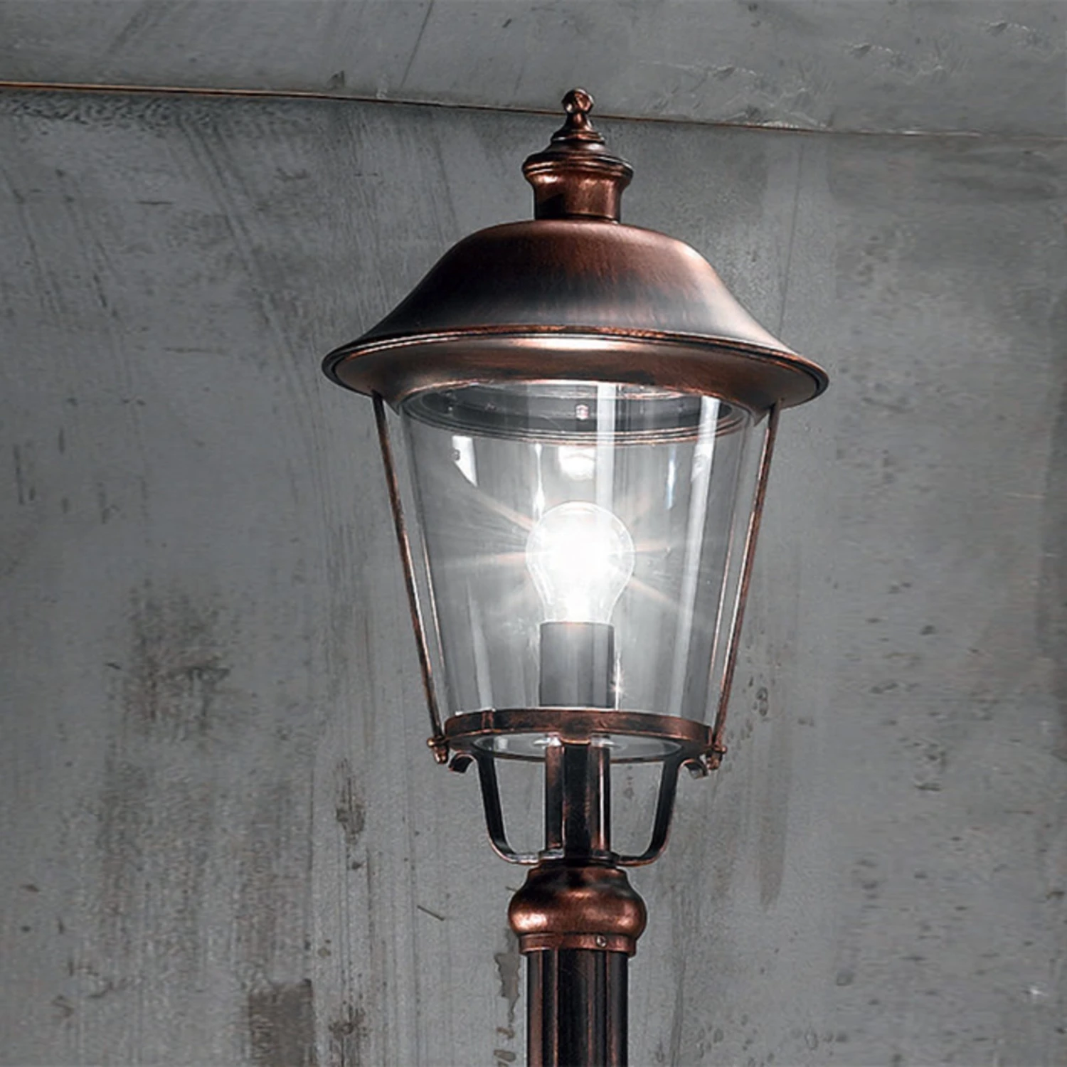 Le lampadaire MARIELLA diffuse une lumière claire à l’extérieur grâce au verre acrylique transparent