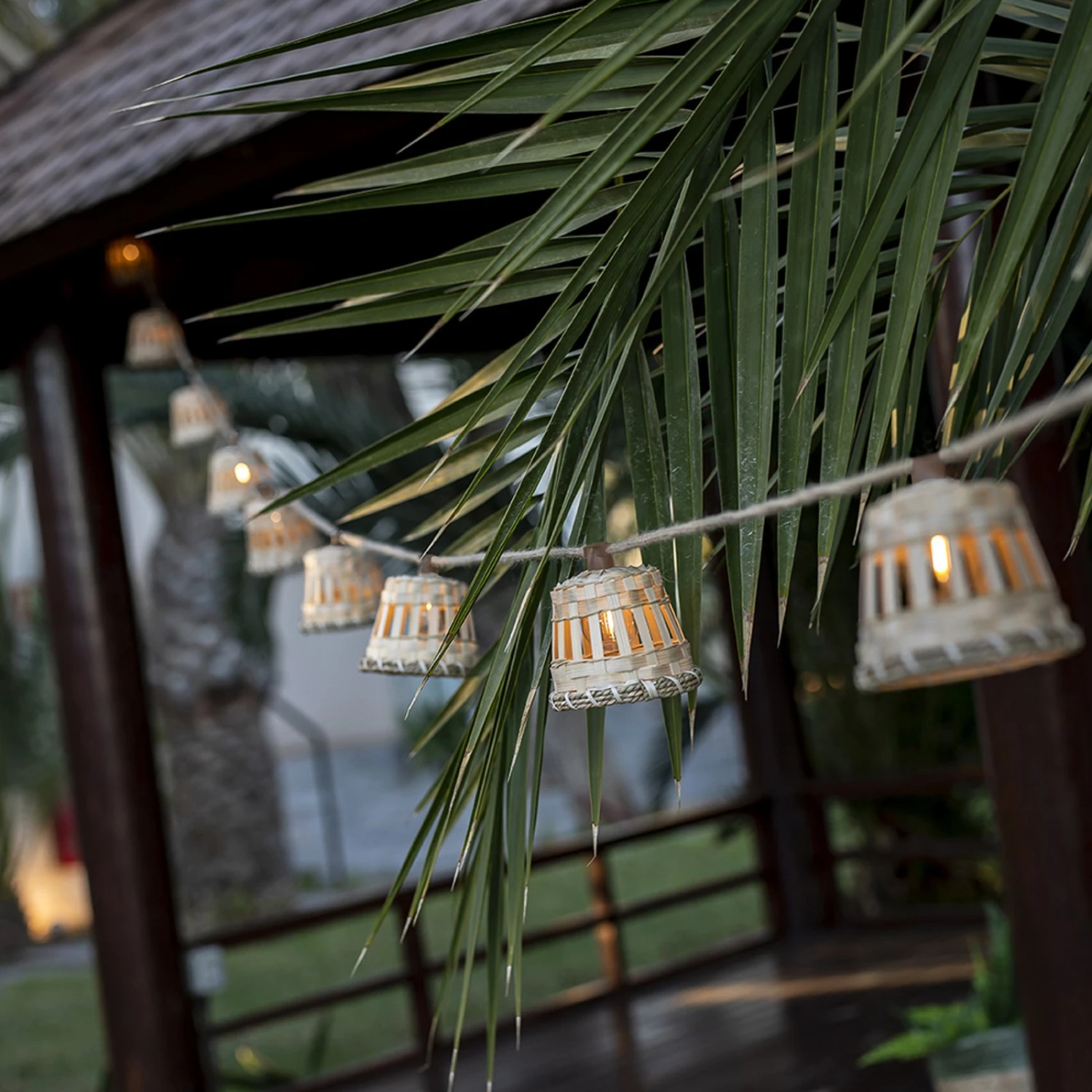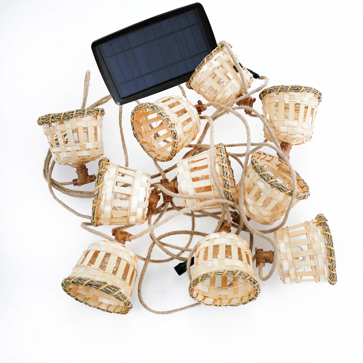 Guirlande lumineuse solaire à LED Aurora avec abat-jour décoratif en fibres naturelles