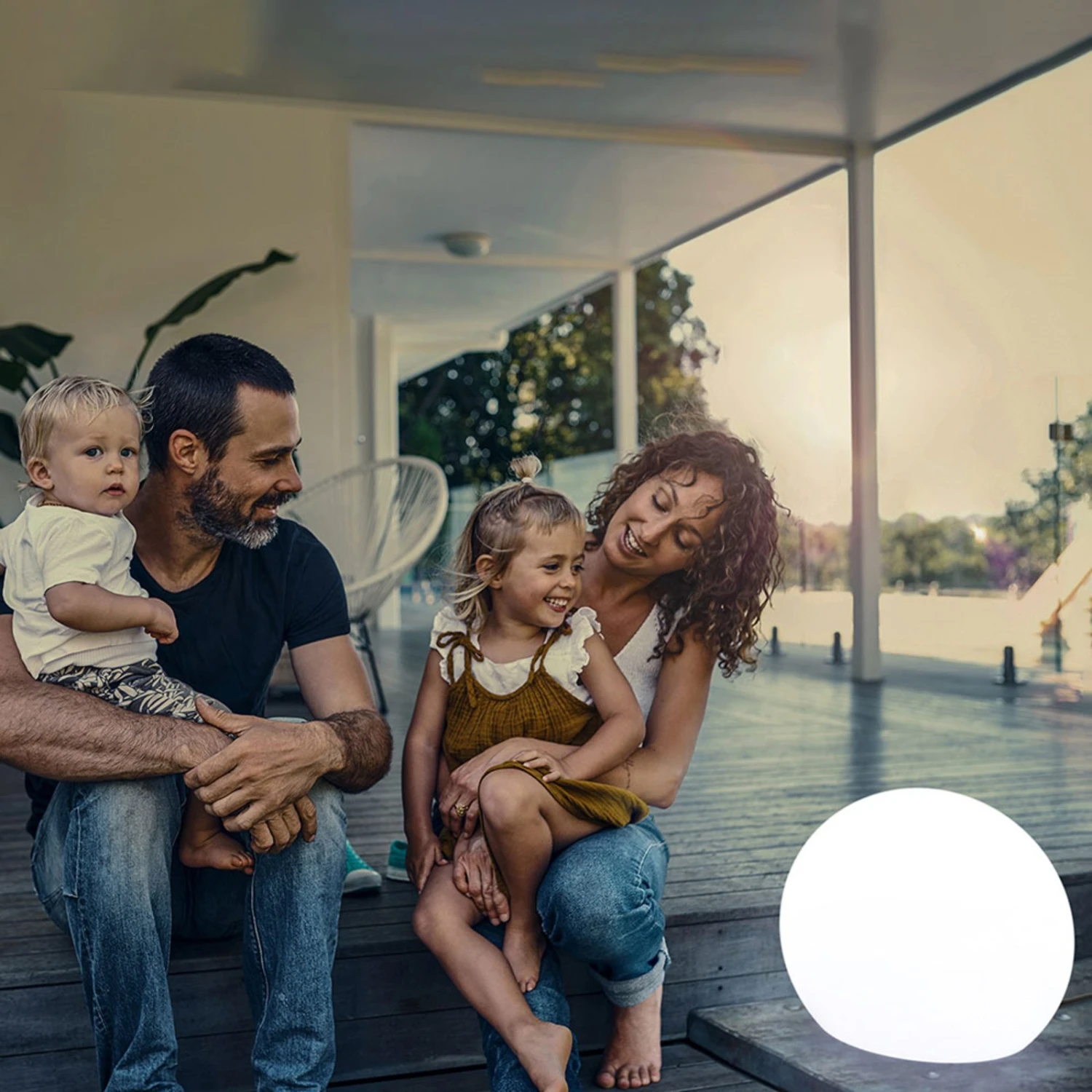 Fabriquée en polyéthylène résistant aux intempéries et aux UV, la lampe décorative Buly peut être placée sur la terrasse, sur la pelouse ou dans les parterres de fleurs et devient une décoration lumineuse surtout en combinaison avec d’autres lampes de la série comme un ensemble. Le corps sphérique est uniformément éclairé par une lampe LED avec un culot E27 à l’intérieur. L’ampoule est incluse et peut être remplacée.