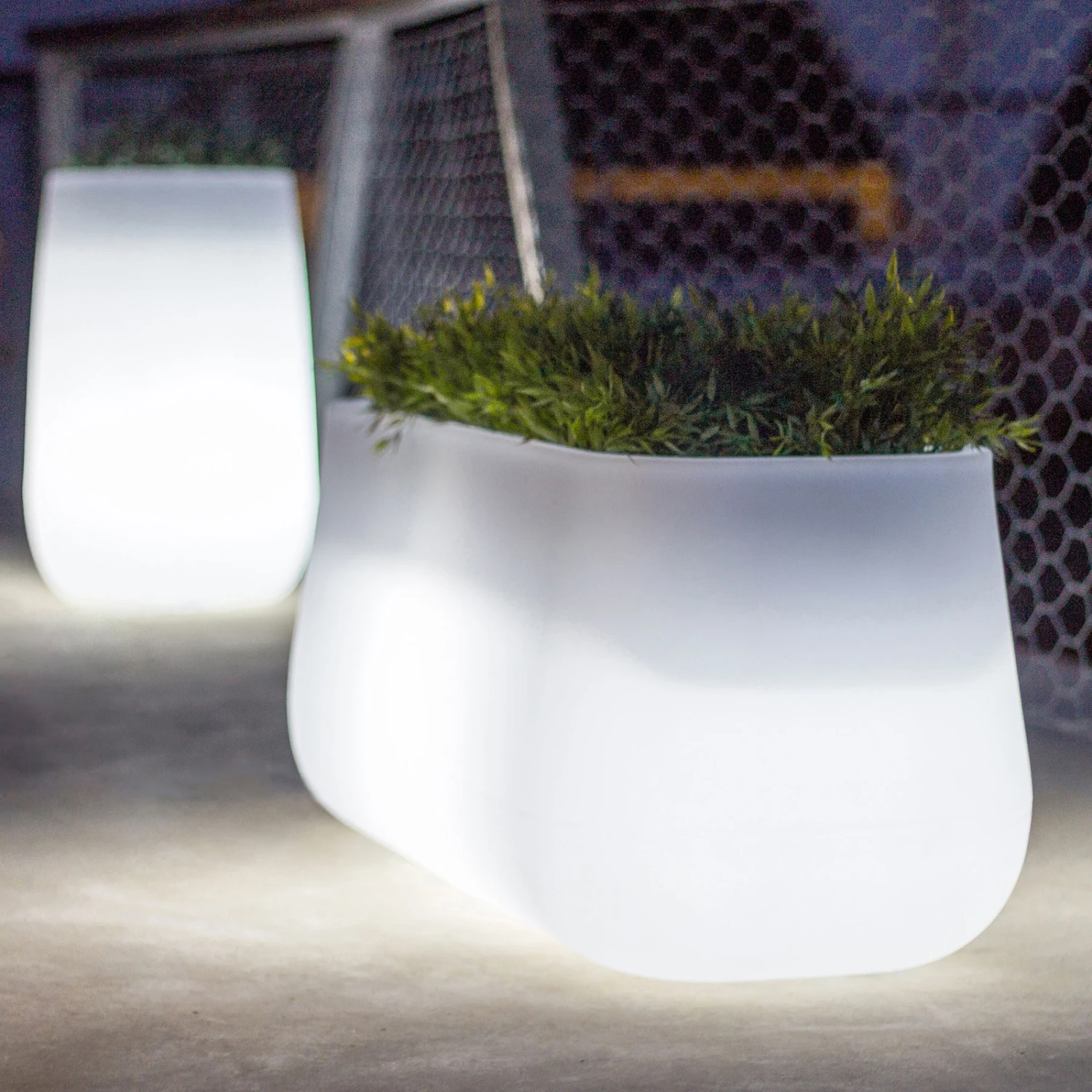 Dans une forme allongĂ©e, lĂ©gĂšrement bulbeuse, se prĂ©sente le pot de fleurs lumineux Camelia, qui non seulement offre de l’espace pour plusieurs plantes, mais reprĂ©sente aussi une dĂ©coration lumineuse pour l’intĂ©rieur et l’extĂ©rieur. Le seau du label d’Ă©clairage espagnol Newgarden Ă©tait – comme presque tous les produits du fabricant – fabriquĂ© en polyĂ©thylĂšne. Le matĂ©riau est 100% recyclable et trĂšs robuste. Il rĂ©siste Ă des tempĂ©ratures extrĂȘmes, est rĂ©sistant aux UV et lĂ©ger. Le pot contient des LED RVB et aussi des LED blanches, de sorte que le pot translucide peut briller dans d’innombrables couleurs lumineuses ou aussi en lumiĂšre blanche grĂące Ă la tĂ©lĂ©commande fournie et la luminositĂ© peut Ă©galement ĂȘtre rĂ©glĂ©e.