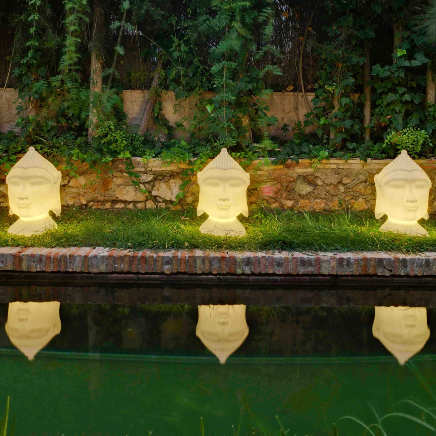 La lampe de patio Goa, conçue en forme de tête de Bouddha, est un atout pour tout jardin zen. L’ensemble du luminaire est fabriqué en polyéthylène, un plastique résistant aux UV et à des températures particulières.