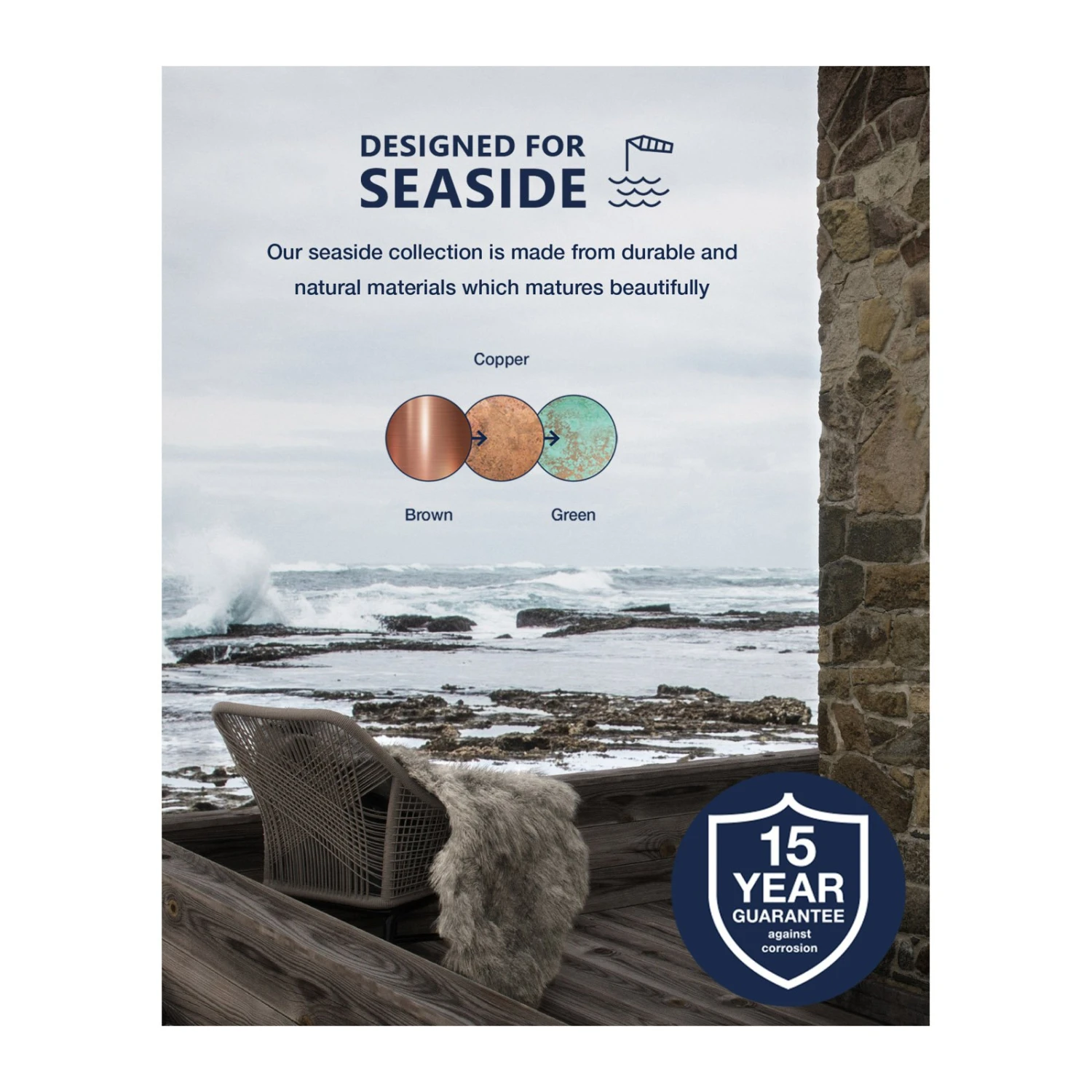 Remarque : la surface du cuivre accumulera du vert-de-gris avec le temps. C’est un processus naturel. Avant que ce processus chimique ne soit terminé, la surface peut sembler irrégulière.