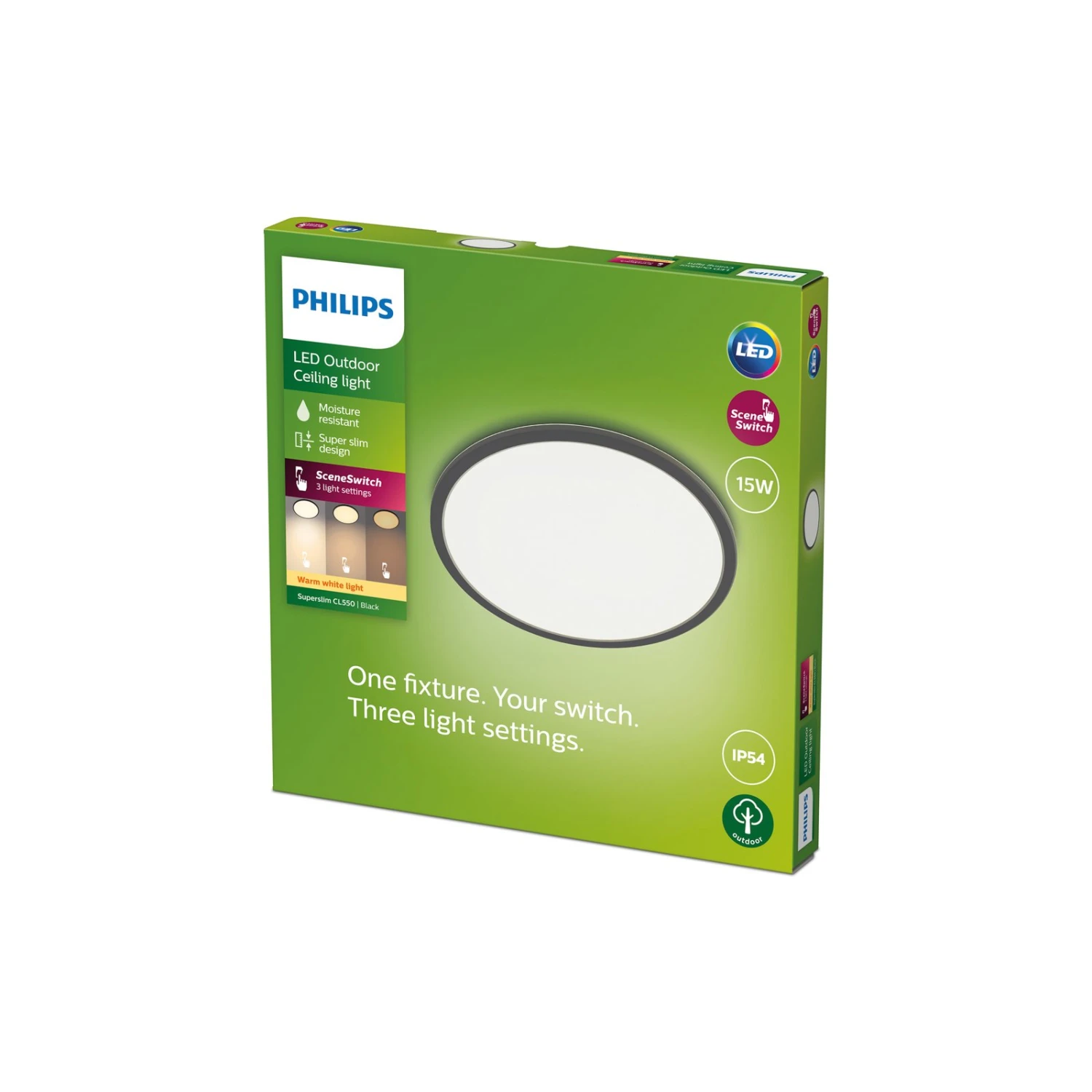 Philips Superslim LED IP54 Ø 25 cm 2 700 K Noir