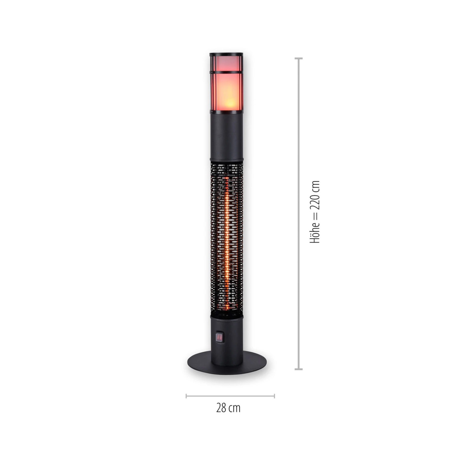 Pour passer des heures agrĂ©ables sur la terrasse ou le balcon lors des soirĂ©es fraĂźches, le chauffage radiant moderne sur pied Glow offre une chaleur agrĂ©able et une lumiĂšre douce. Outre le radiateur d’une puissance de 1.500 watts, il possĂšde des LED intĂ©grĂ©es qui Ă©clairent doucement d’une belle lumiĂšre blanche chaude. Pour donner l’illusion d’une lueur d’incendie, les LED sont en outre dotĂ©es d’un effet de flammes. Le spot est Ă©quipĂ© de deux interrupteurs Ă bascule qui permettent de commander sĂ©parĂ©ment les LED et le radiateur.