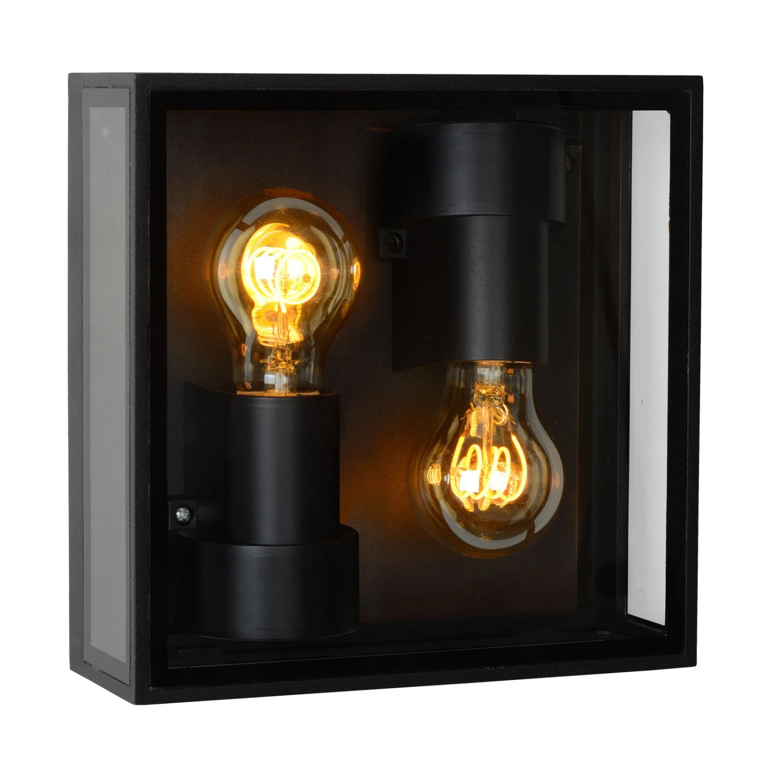 Le plafonnier Dukan possède deux prises E27, qui sont présentées comme dans une vitrine ; la vue des sources lumineuses utilisées reste dégagée à travers le verre transparent. L’émission de lumière est possible dans toutes les directions. La protection contre les jets d’eau et la densité de poussière (IP65) permettent une utilisation en extérieur sans hésitation. Il peut y être installé, par exemple, aux entrées, aux abris pour voitures ou aux garages et éclairer suffisamment la zone souhaitée.