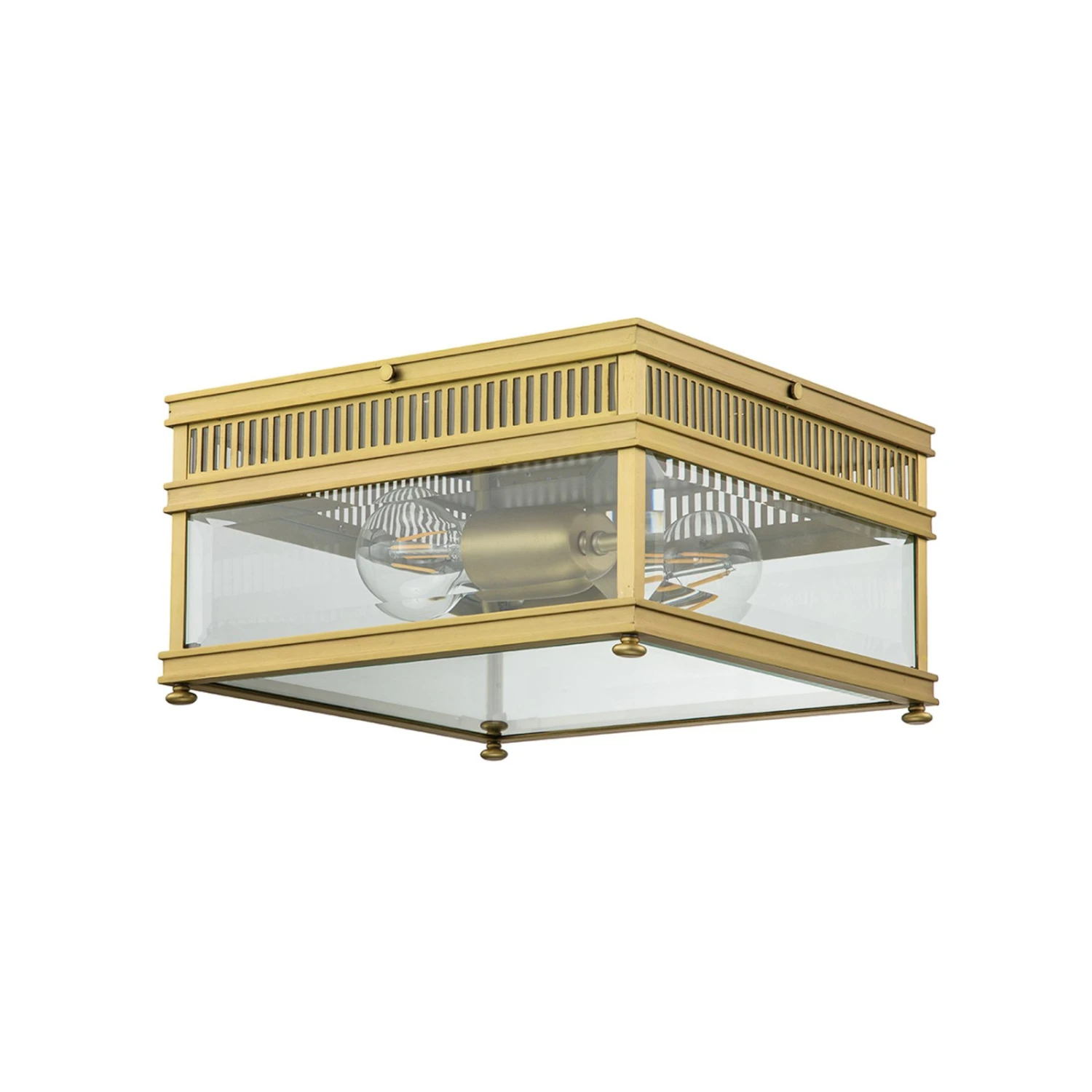 Plafonnier au design antique pour l’extérieur Holborn est un plafonnier très esthétique en laiton robuste pour l’extérieur, comme par exemple la terrasse couverte. Le verre transparent permet de voir les ampoules utilisées (non incluses), c’est pourquoi il est recommandé de recourir à des ampoules décoratives à filament ou rustiques. – gradation externe