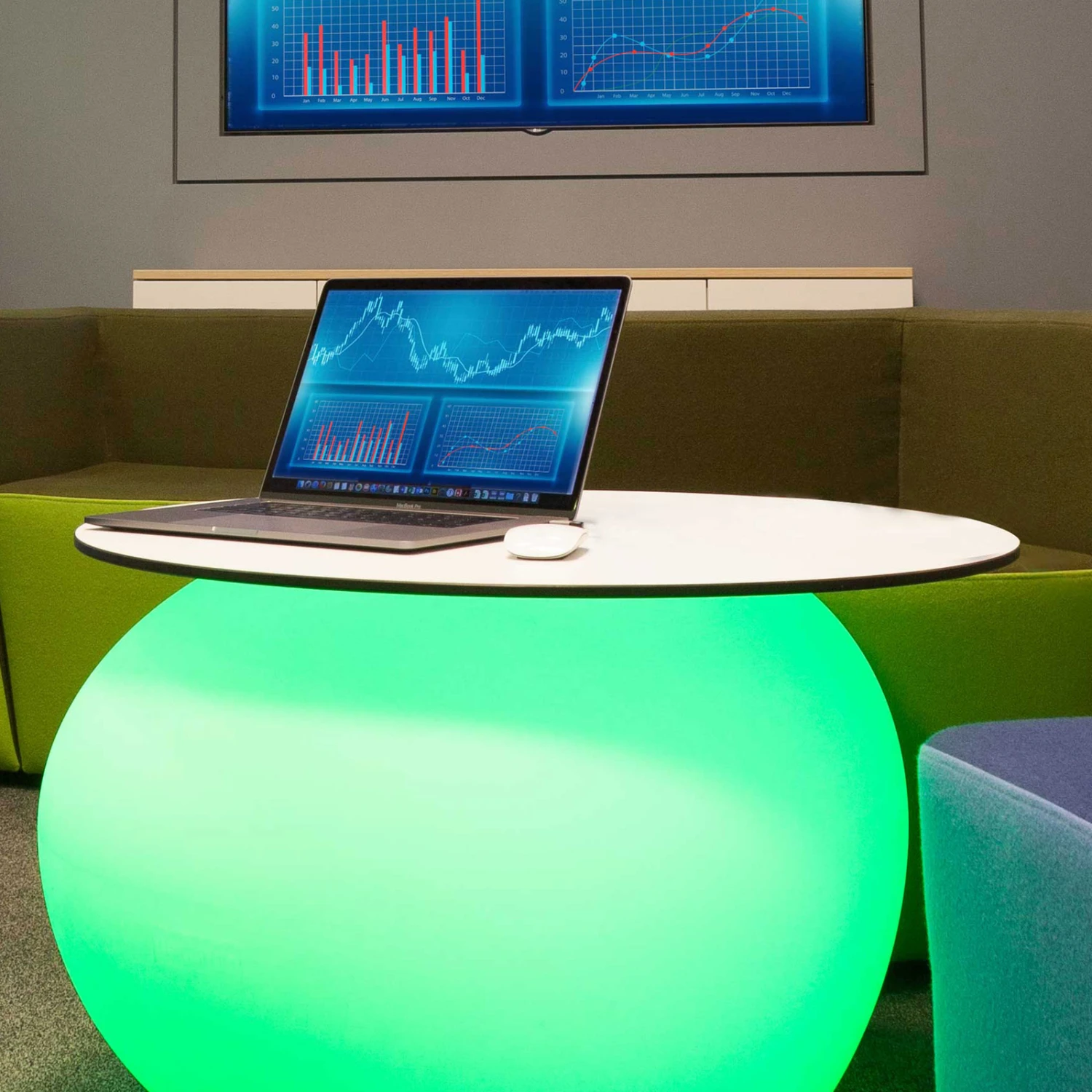 Avec ce simple plateau blanc, qui résiste aux intempéries, la lampe décorative Rovio III pour l’intérieur et l’extérieur devient une table haute pratique. Idéal pour la prochaine fête.