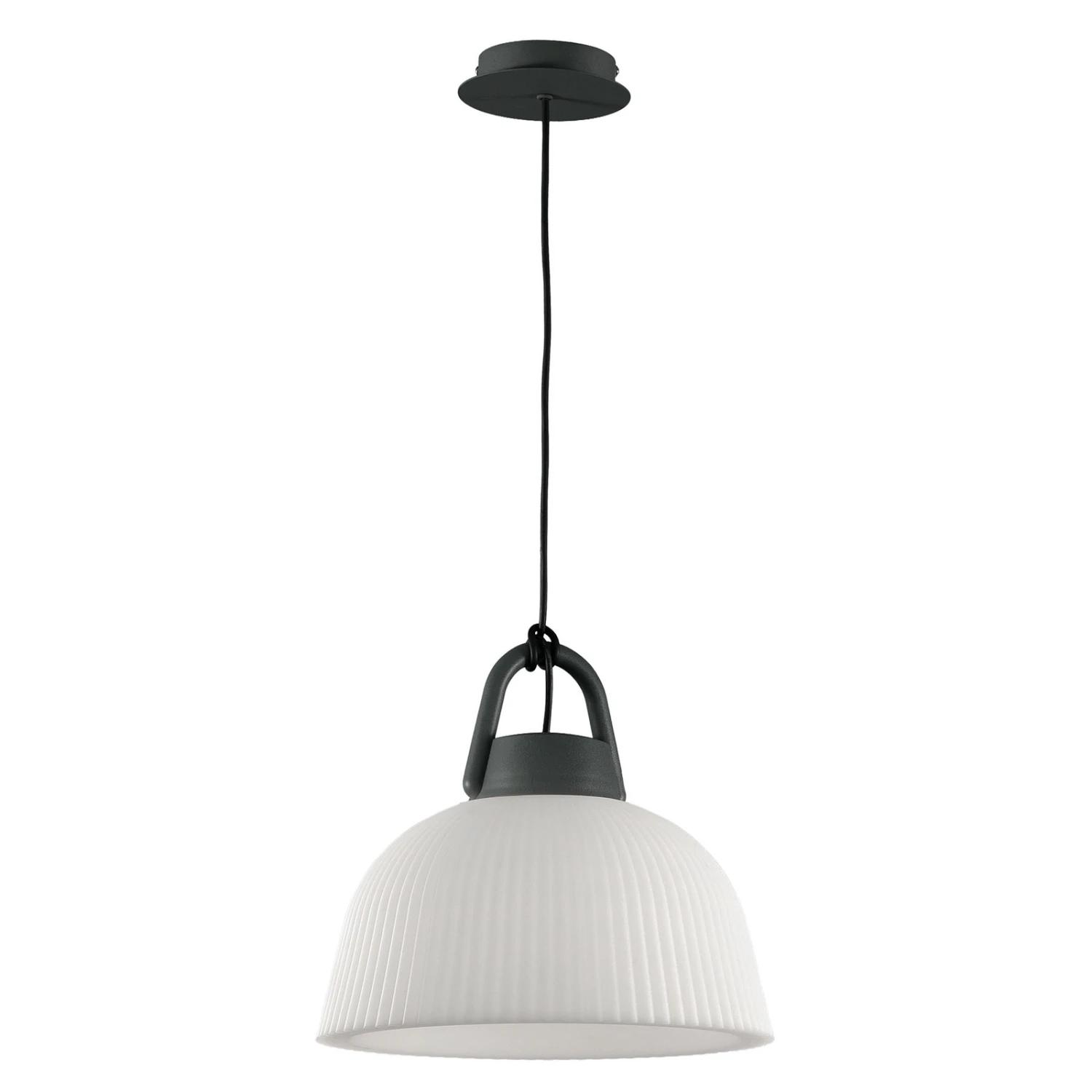 La lampe suspendue Kinké inspire grâce à son abat-jour semi-circulaire, qui présente des rainures longitudinales. Cela donne à la lampe une légère touche rustique.