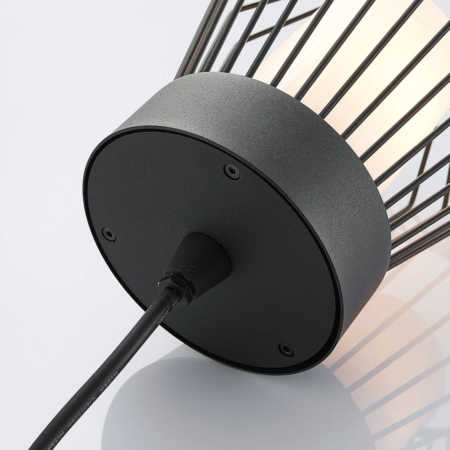 Suspension d’extérieur Vajana avec abat-jour en forme de cage et abat-jour intérieur blanc en matériau synthétique