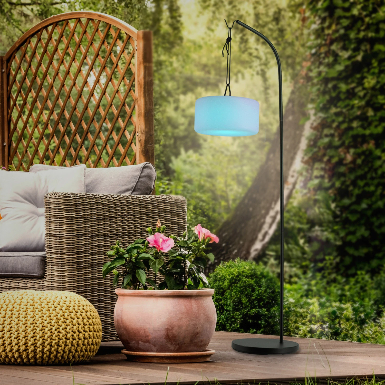 La suspension LED Holly permet d’obtenir des accents modernes et une ambiance unique à l’extérieur. Grâce à son fonctionnement sur batterie, elle peut être placée n’importe où. Le grand abat-jour en plastique résistant aux intempéries ne se contente pas d’attirer l’attention, il assure également un éclairage sans éblouissement. Le module LED situé à l’intérieur est équipé d’une batterie qui peut être rechargée à l’aide du câble USB fourni. Un interrupteur à bouton-poussoir intégré permet de commuter facilement la lumière et de régler la couleur de la lumière, ce qui permet de créer une ambiance adaptée à chaque situation. Le point fort : la suspension LED Holly est équipée d’un crochet métallique noir sur l’abat-jour qui permet de la suspendre avec le câble fourni ou de la combiner avec le pied adapté, disponible dans les accessoires.